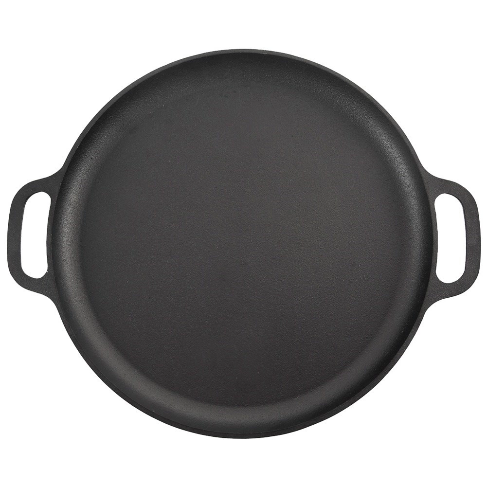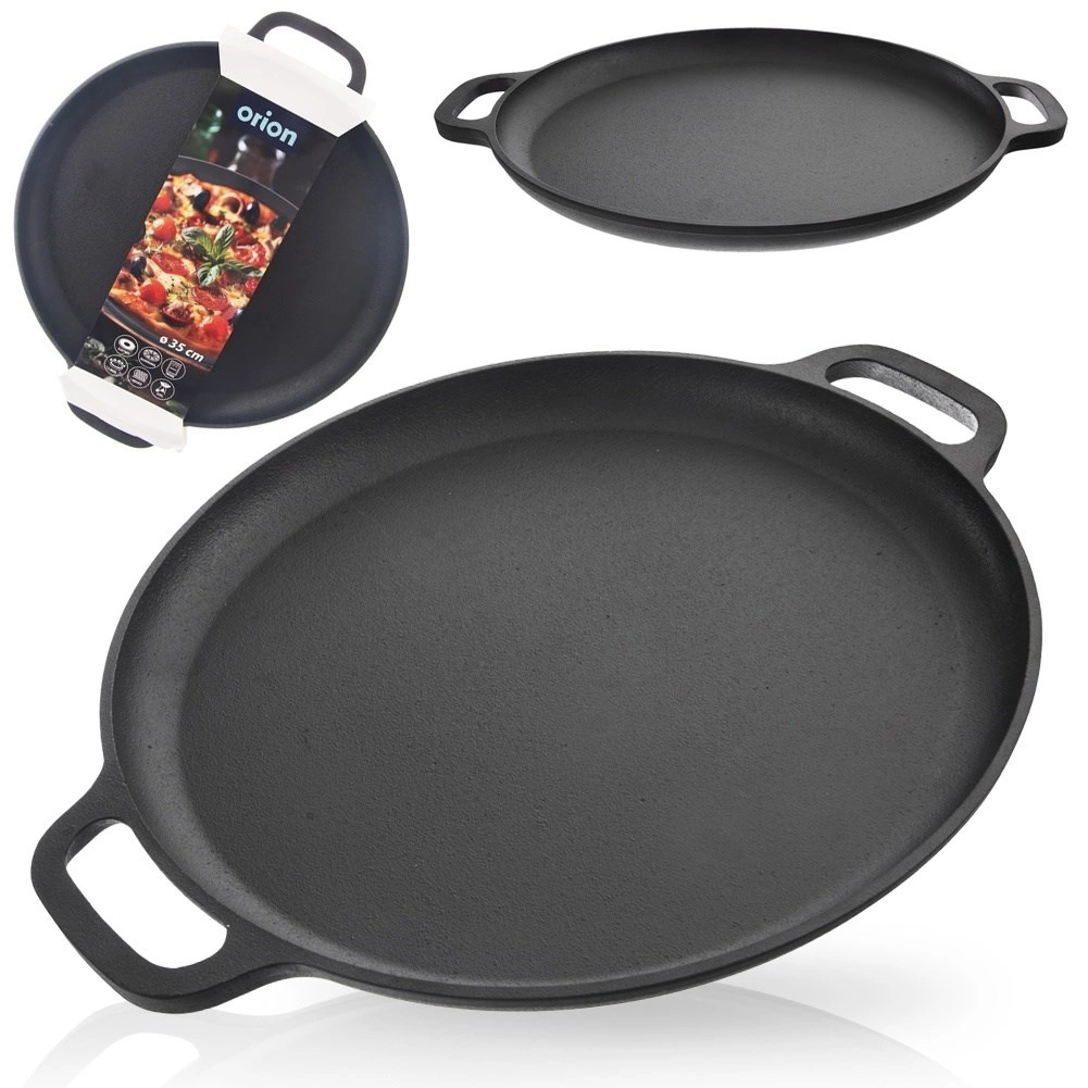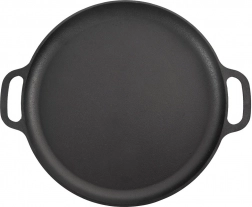 Descoperă puterea fontei pentru gătitul de zi cu zi. Această tigaie cu diametrul de 35 cm și margine joasă (aprox. 3 cm) este perfectă pentru pizza, fripturi, legume și cartofi copți. Corpul masiv din fontă asigură acumulare îndelungată a căldurii și coacere uniformă fără zone fierbinți.
