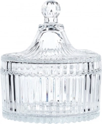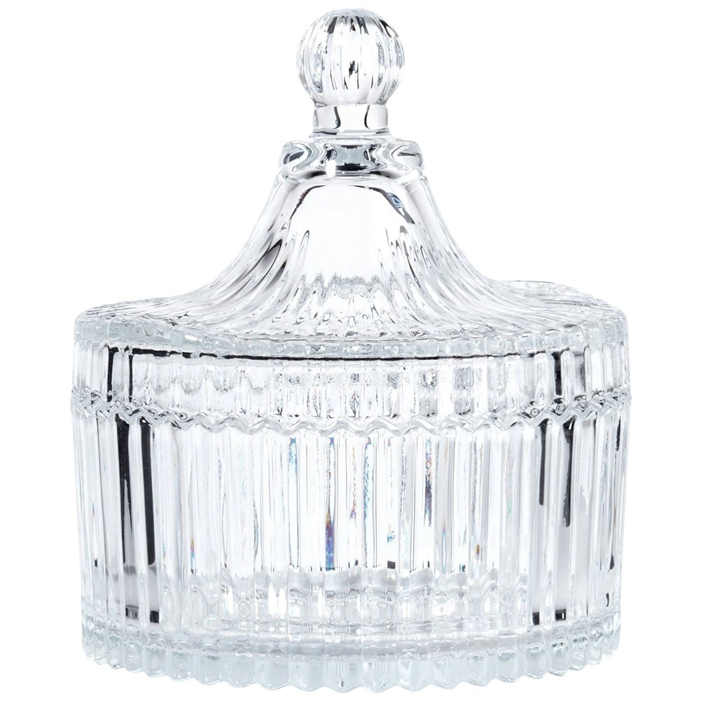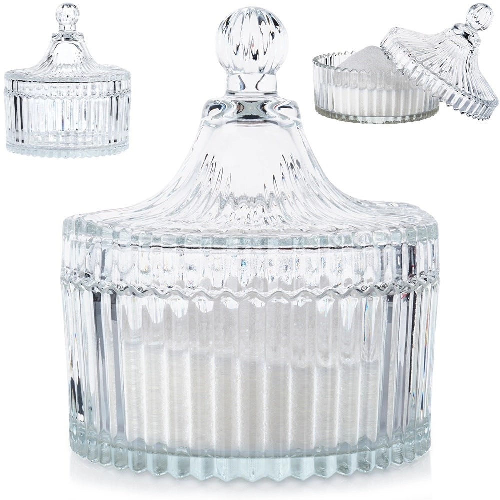 Această zaharniță combină funcționalitatea cu un design atemporal. Canelurile verticale și detaliile fin fațetate conferă recipientului un aspect luxos, în timp ce sticla transparentă permite verificarea ușoară a conținutului. Înălțimea fără capac este de 5 cm, astfel încât încape confortabil pe masă și pe raft.