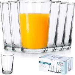 Acest set universal de pahare este ideal pentru apă, limonade, sucuri, ceaiuri cu gheață și băuturi mixate. Forma simplă, atemporală, se potrivește perfect cu orice masă și se asortează excelent cu celelalte piese de veselă. Paharele au o înălțime de aprox. 10 cm și un diametru de 7 cm, astfel încât se țin confortabil în mână și se depozitează ușor.