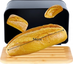 Capacul din bambus servește și ca tocător – este suficient să îl îndepărtați pentru a felia comod pâinea sau bagheta. Construcția spațioasă găzduiește diverse tipuri de produse de panificație și, datorită designului curat, se potrivește ușor atât în interioare moderne, cât și clasice.