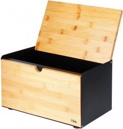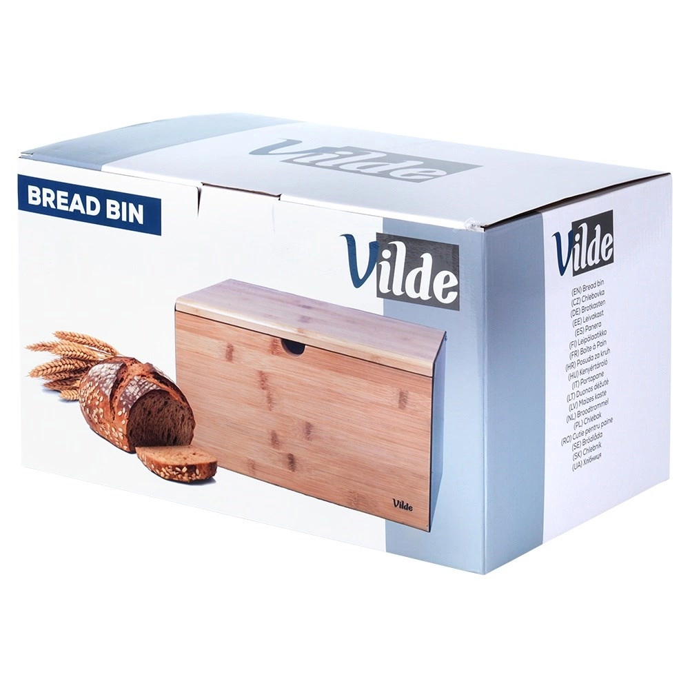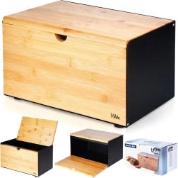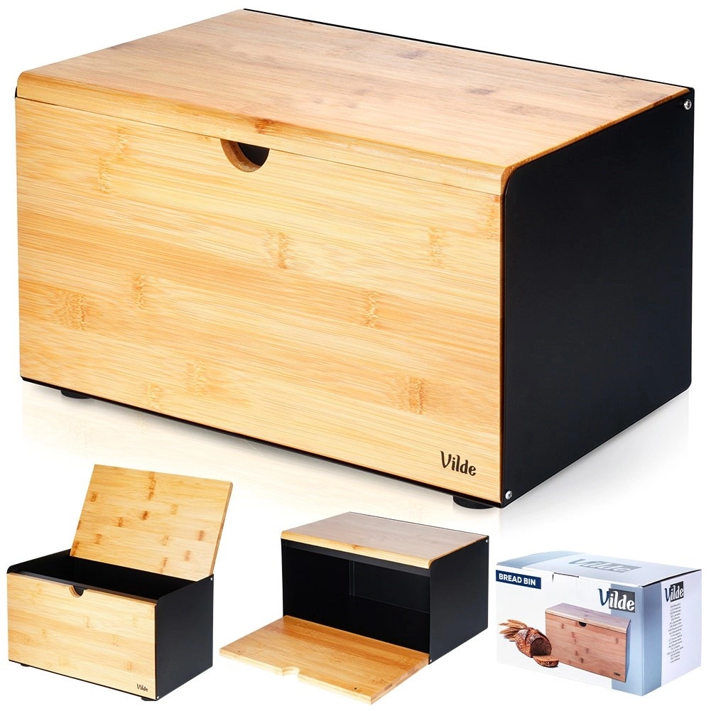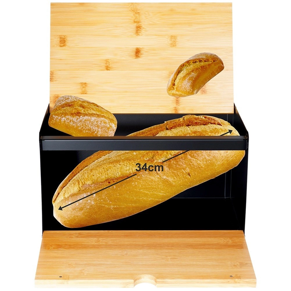 Soluție practică 2 în 1: capacul superior din bambus servește drept placă rezistentă pentru tăierea pâinii și produselor de panificație, direct lângă cutie.