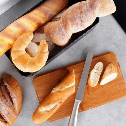 Capacul din bambus poate fi folosit pentru felierea comodă a pâinii. Economisește spațiu și este mereu la îndemână.