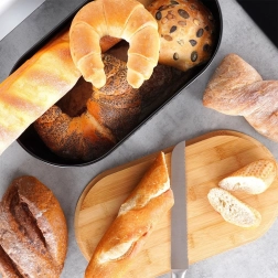 Cutia de pâine ovală limitează accesul aerului, astfel pâinea și produsele de panificație rămân mai mult timp moi, aromate și gustoase.