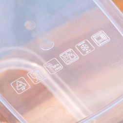 Fabricat din plastic de calitate, fără BPA nociv. Potrivit pentru frigider, congelator, mașina de spălat vase și cuptorul cu microunde (fără capac).