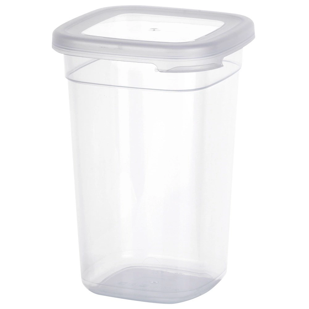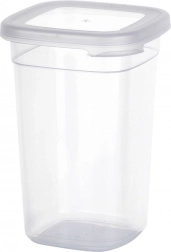 Recipient de bucătărie practic, cu volum de 1 l și capac etanș, ideal pentru alimente vrac precum cafea, paste sau nuci. Pereți transparenți pentru verificare rapidă a conținutului, fără BPA, potrivit pentru frigider, congelator, cuptor cu microunde (fără capac) și mașină de spălat vase. Dimensiuni 11 × 11 × 16 cm.
