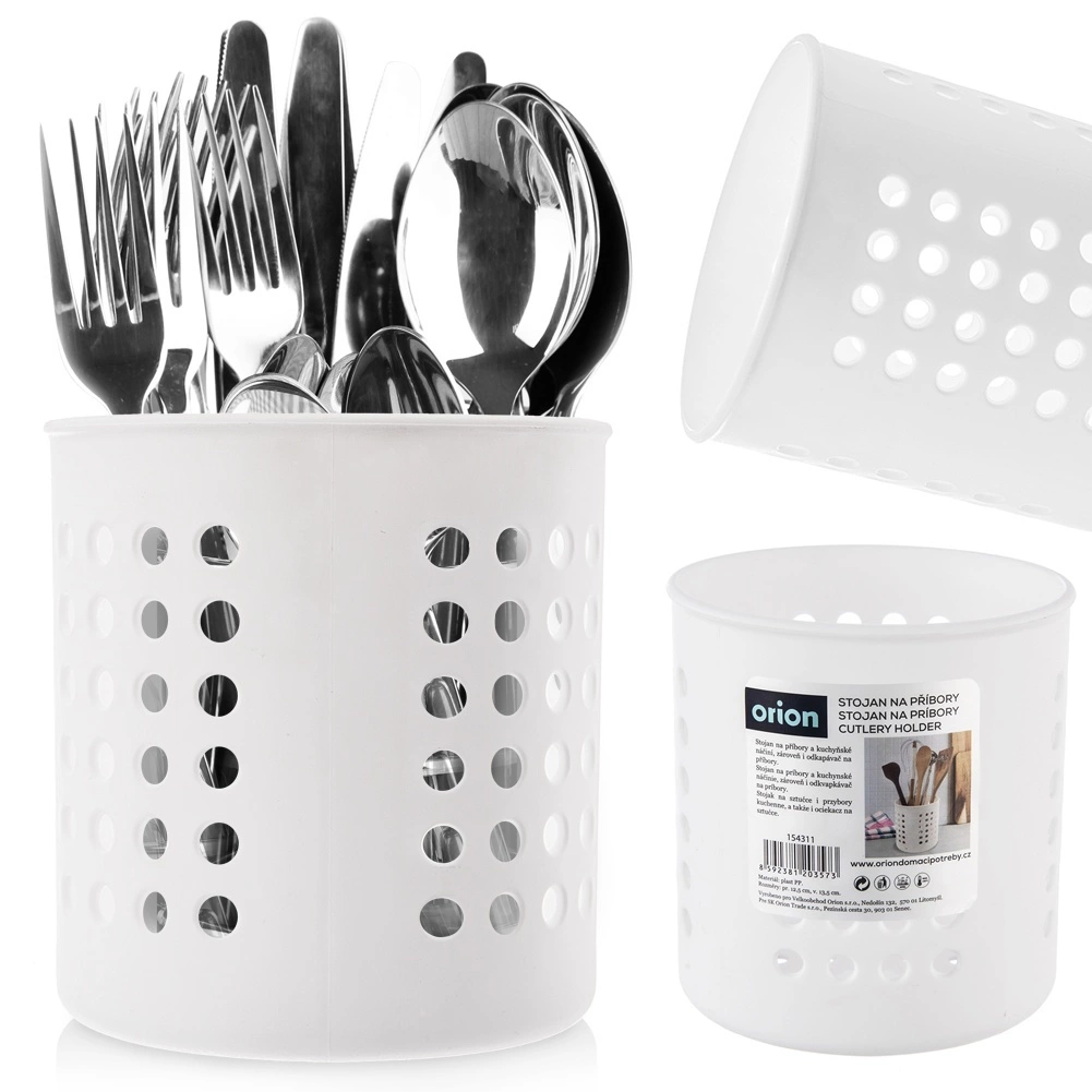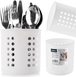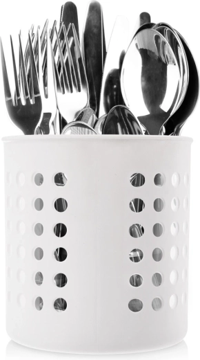 Menține-ți bucătăria ordonată cu suportul universal care servește atât ca scurgător pentru tacâmuri, cât și ca organizator pentru ustensile de bucătărie. Perforațiile pe întreg perimetrul și în partea de jos ajută la evacuarea umidității, astfel încât lingurile, furculițele, cuțitele și telurile se usucă mai repede și rămân depozitate igienic.