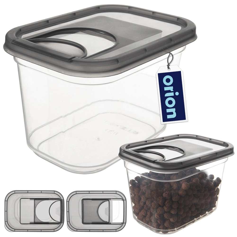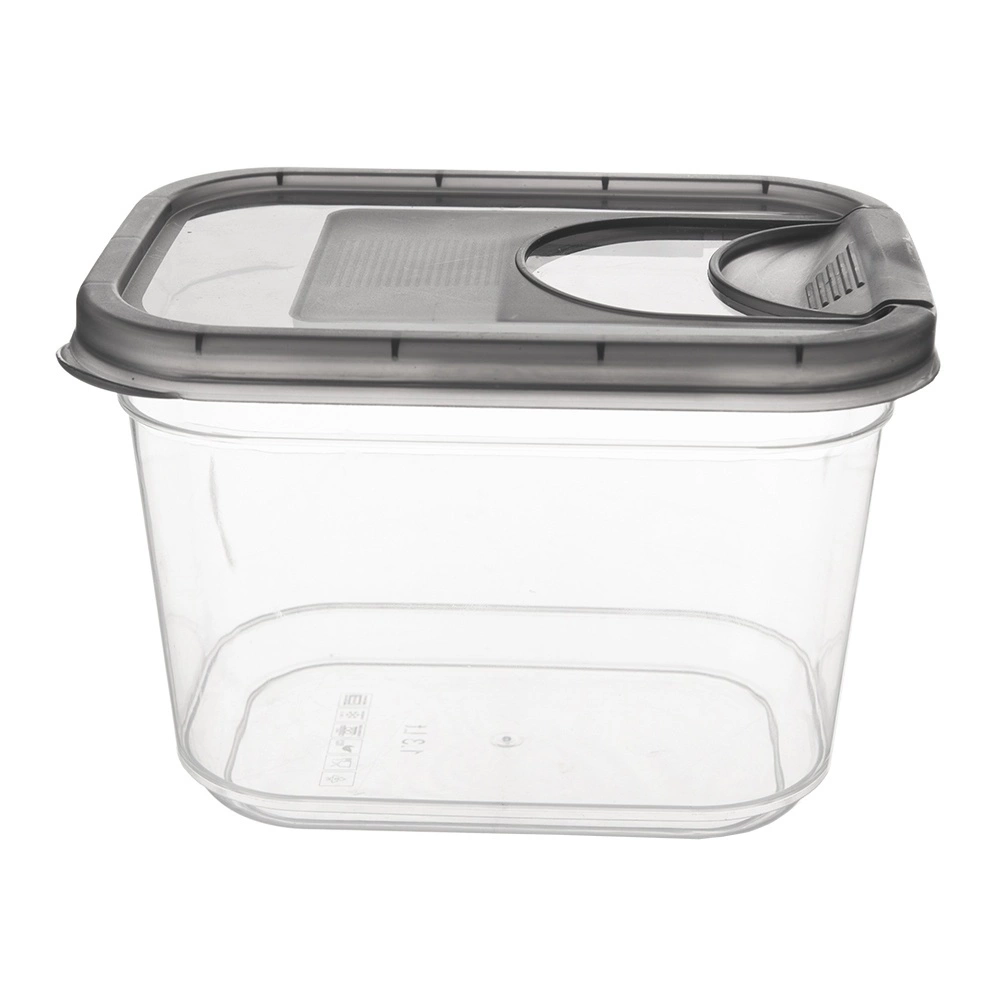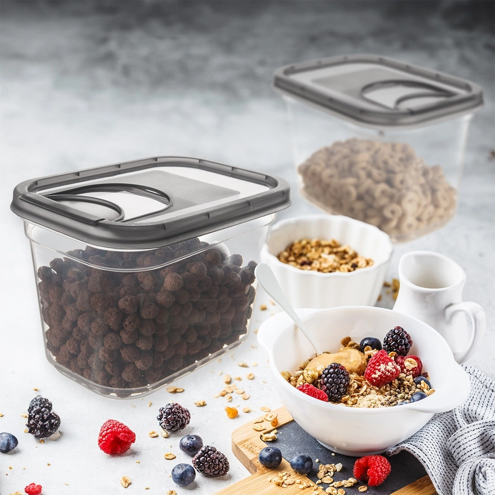 Aduceți ordine în cămară și bucătărie. Acest recipient din gama Grey este ideal pentru cafea, cereale, paste, nuci, müsli sau ciuperci uscate. Datorită pereților transparenți vedeți ușor stocul, iar capacul dozator permite turnarea comodă și curată fără a scoate capacul întreg.