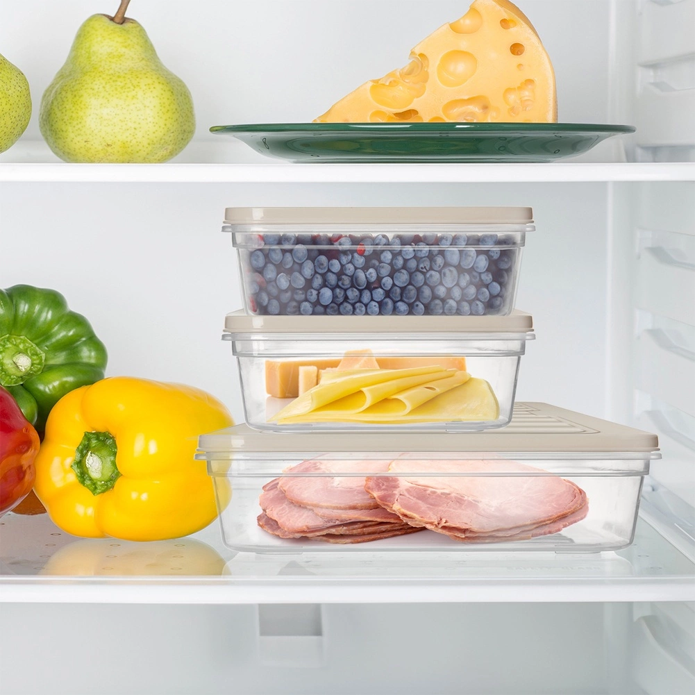 Datorită rezistenței la temperaturi de la -25 °C până la +95 °C, este potrivit pentru congelator și frigider, se poate spăla în mașina de spălat vase și se poate folosi la cuptorul cu microunde fără capac. Pereții transparenți asigură orientare rapidă fără a deschide, iar forma stivuibilă aduce ordine în frigider și cămară.