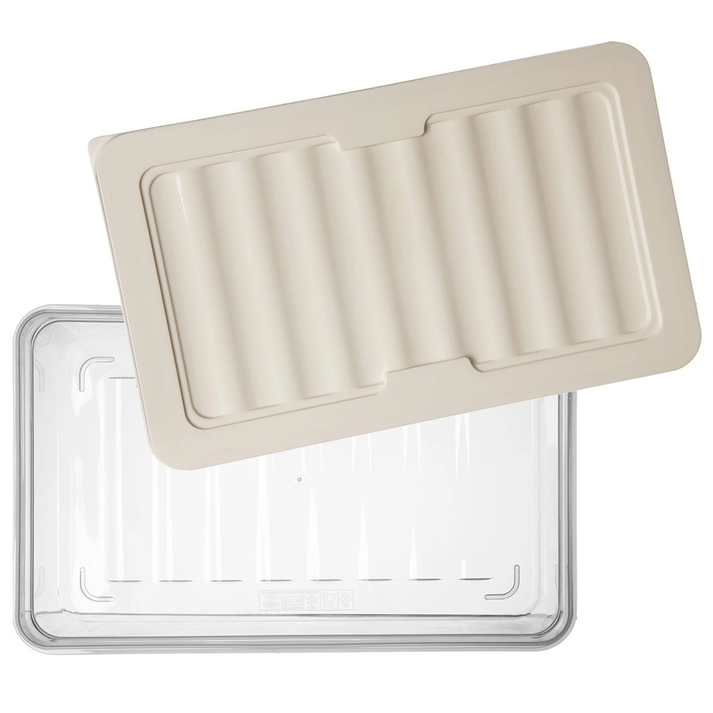 Capacul crem care se potrivește ferm minimizează pierderea aromei și protejează conținutul de umiditate și de mirosurile din frigider.