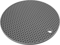 Suport practic din silicon pentru vase fierbinți, cu dimensiunile 17,5 × 17,5 cm, protejează blatul și masa împotriva căldurii și zgârieturilor. Are model antiderapant tip fagure, orificiu pentru agățare și este din silicon rezistent, potrivit pentru mașina de spălat vase. Rezistă la temperaturi de -10 °C până la +220 °C și este util în orice bucătărie.