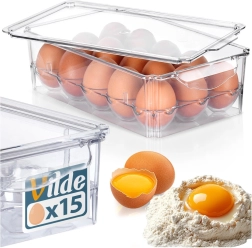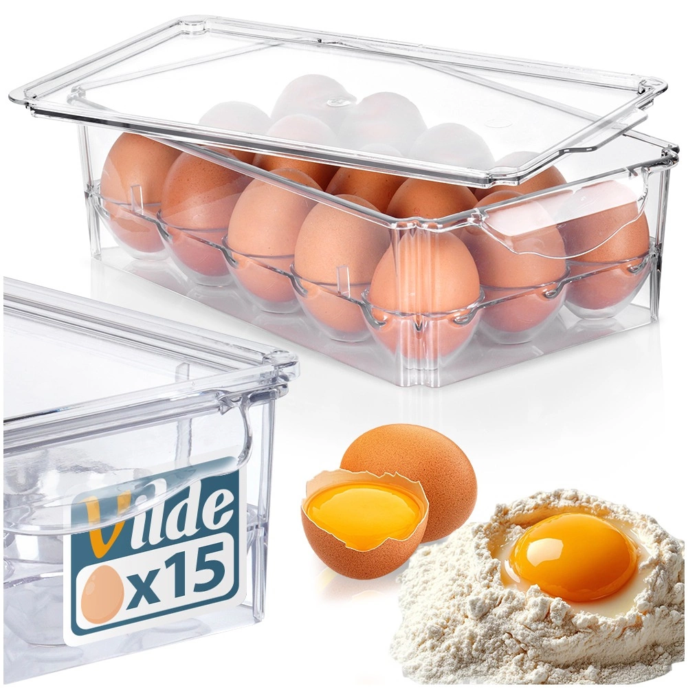 O modalitate practică și igienică de a avea ouăle din frigider mereu la îndemână și bine organizate. Organizatorul transparent pentru 15 ouă, cu capac, economisește spațiu, protejează împotriva deteriorării și mirosurilor nedorite și, datorită locașurilor dedicate pentru fiecare ou, oferă depozitare sigură, verificare ușoară a stocurilor și organizare curată a frigiderului.