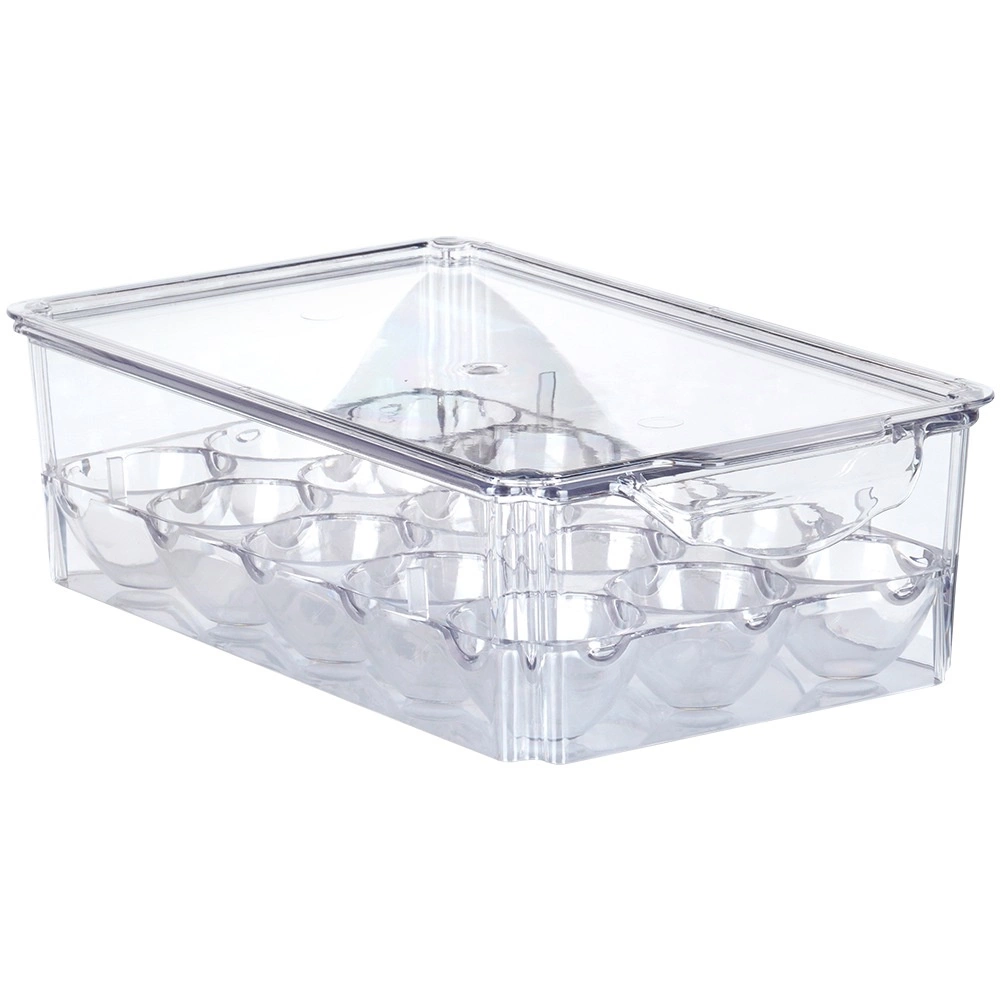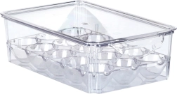 Păstrați ouăle proaspete și în siguranță. Acest recipient complet transparent pentru 15 ouă, durabil și cu capac practic, permite stivuirea ușoară, previne rostogolirea și protejează împotriva spargerii și a absorbției de mirosuri în frigider. Datorită locașurilor înălțate, ouăle nu ating baza și rămân depozitate stabil.