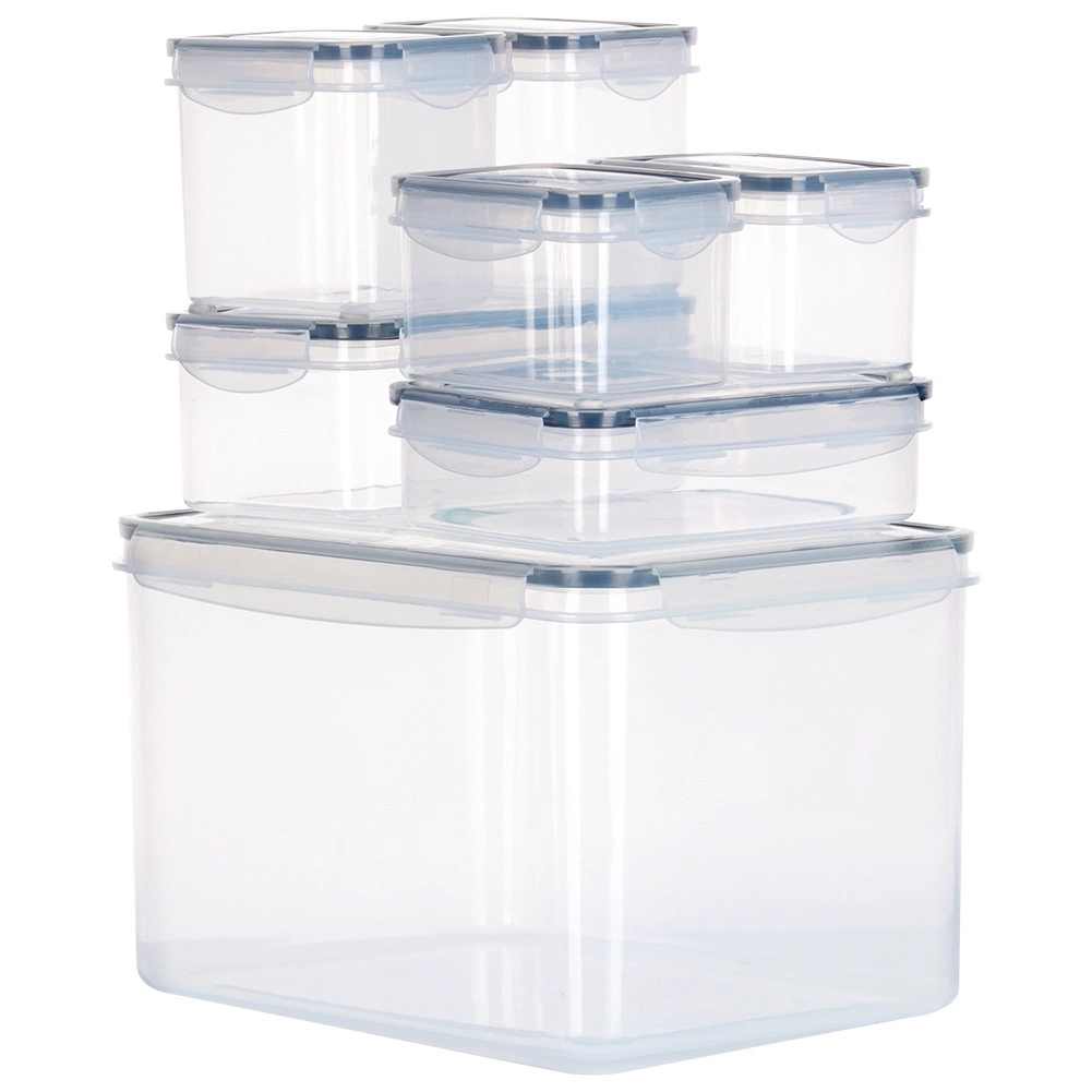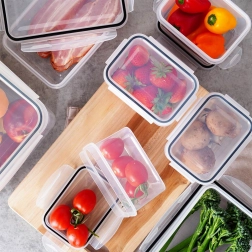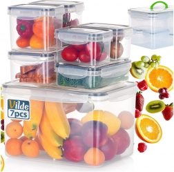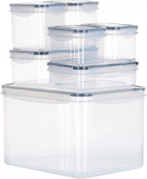 Acest set universal include cinci dimensiuni pentru depozitarea ingredientelor, preparatelor și gustărilor. Designul transparent permite verificarea rapidă a conținutului fără a deschide, iar cele patru cleme laterale cu garnitură din silicon asigură etanșeitate fiabilă la depozitare și transport.