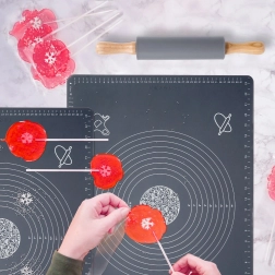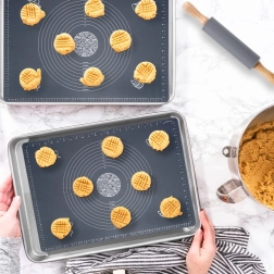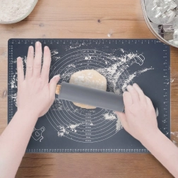 Covorașul din silicon previne lipirea aluatului și, datorită părții inferioare antiderapante, rămâne fix pe loc. Mai puțină făină, bucătărie mai curată și rezultat mai precis.