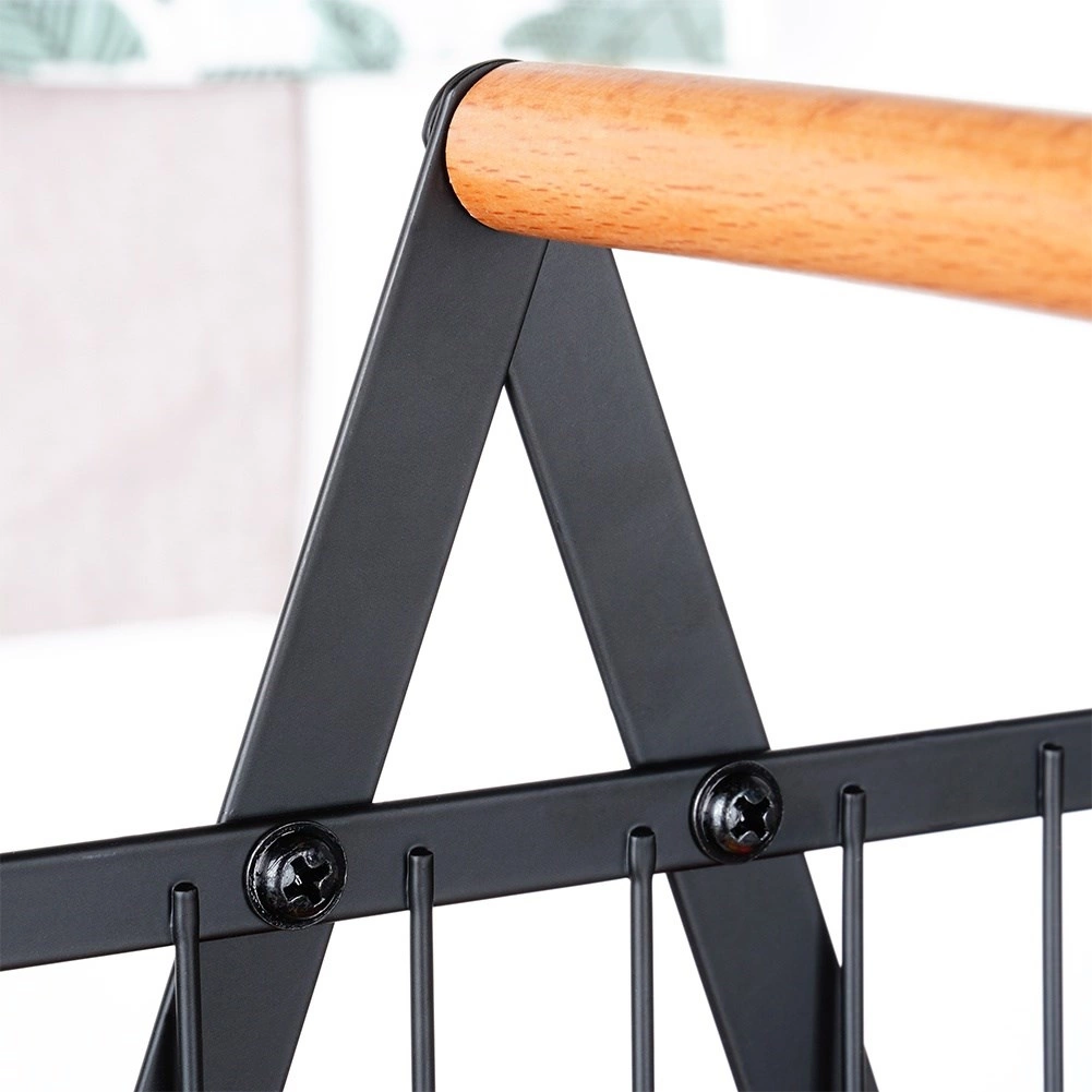 Mânerul practic din lemn, poziționat în partea superioară, permite transportul ușor al întregului suport, chiar și când este încărcat la capacitate maximă.