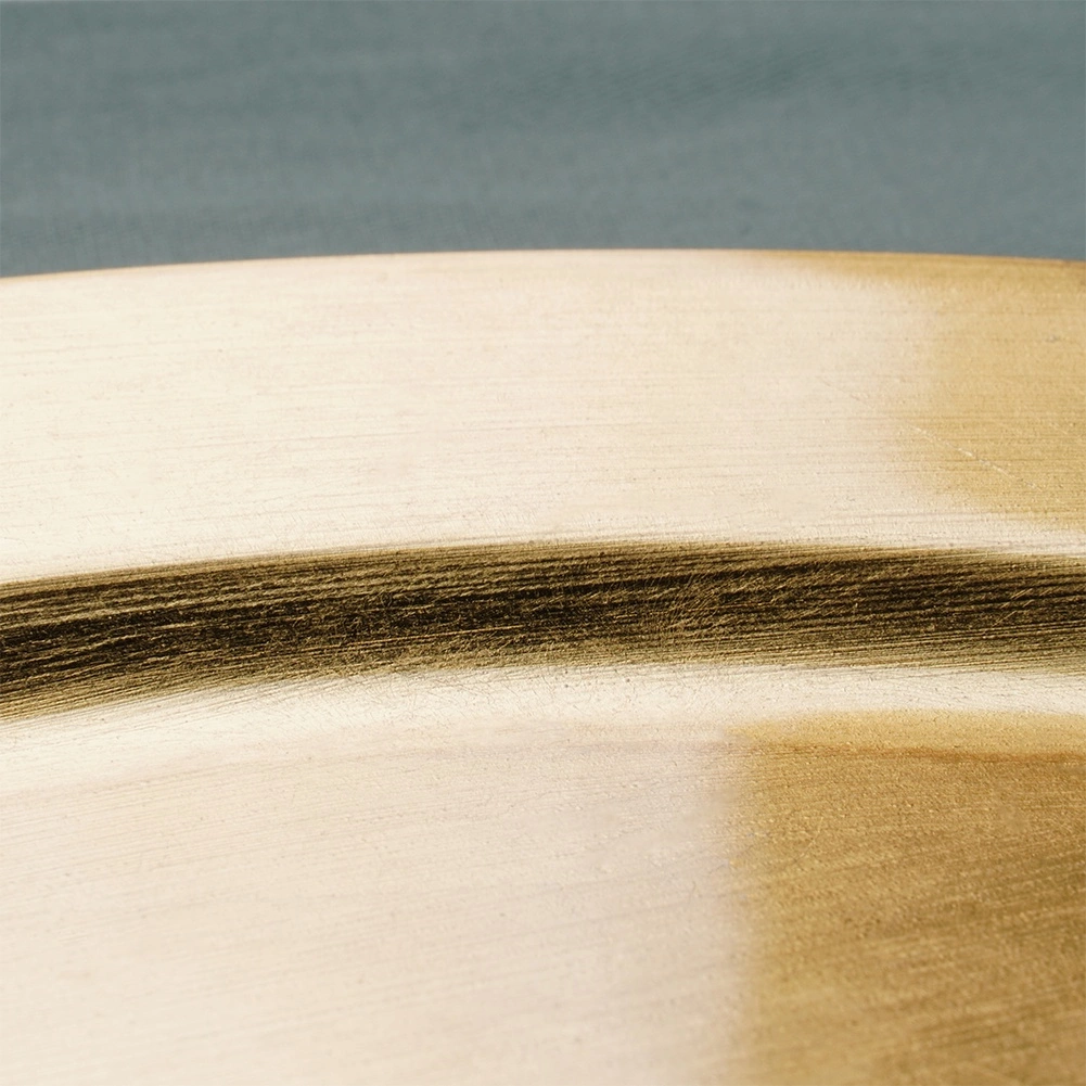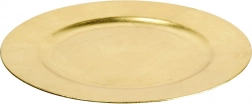 Suport decorativ în nuanță modernă de auriu, ideal ca placă de prezentare stilată sau ca bază pentru aranjamente decorative cu lumânări ori flori. Forma clasică rotundă, cu margine lată, evidențiază frumos vesela de masă și protejează fața de masă de căldură și impurități.