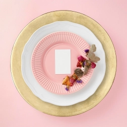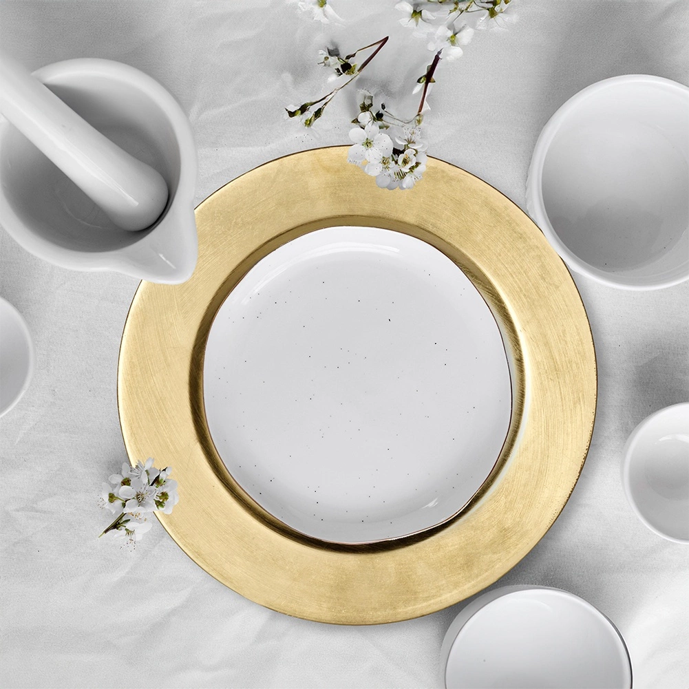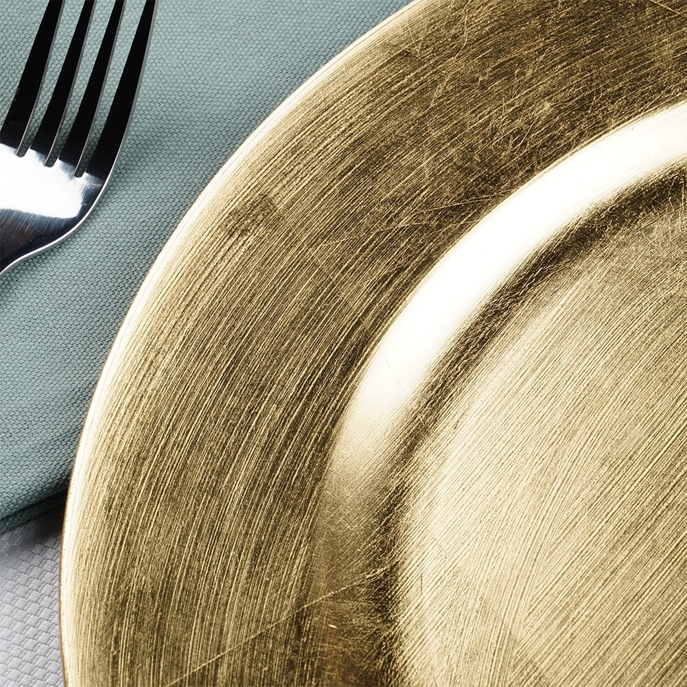 Marginea lată și suprafața strălucitoare transformă orice aranjament într-o masă festivă – ideal pentru nunți, aniversări și sărbători.