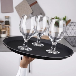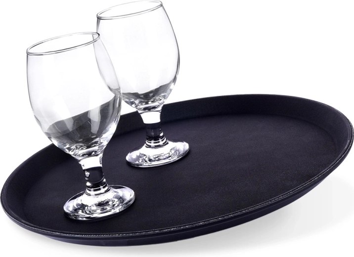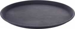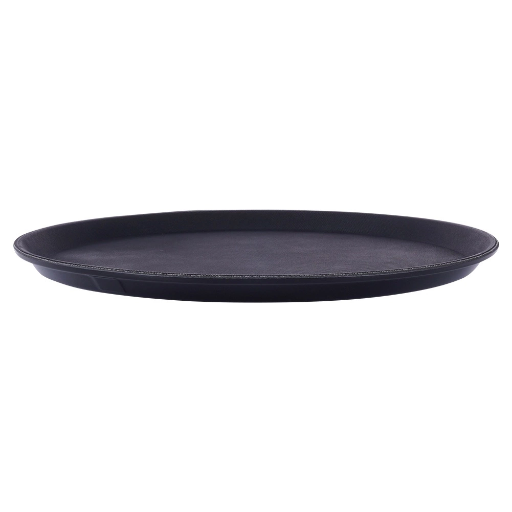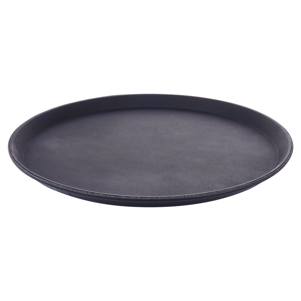 Tava rotundă neagră este un ajutor de încredere pentru servire în cafenele, restaurante și acasă. Datorită tratamentului antiderapant, paharele și farfuriile rămân ferm pe loc chiar și în mișcare, iar marginea înălțată împiedică alunecarea obiectelor.