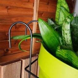 Acest suport metalic pentru ghiveci este alegerea ideală pentru oricine dorește să utilizeze eficient spațiul pe balcon sau terasă. Datorită cârligelor duble, îl agățați cu ușurință pe balustrade cu grosime de până la 5 cm, fără unelte. Structura deschisă din sârmă asigură o bună circulație a aerului în jurul ghiveciului și oferă un aspect elegant.