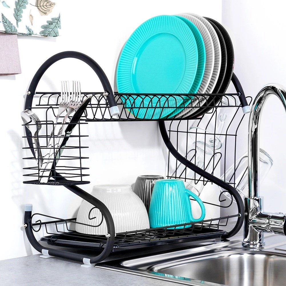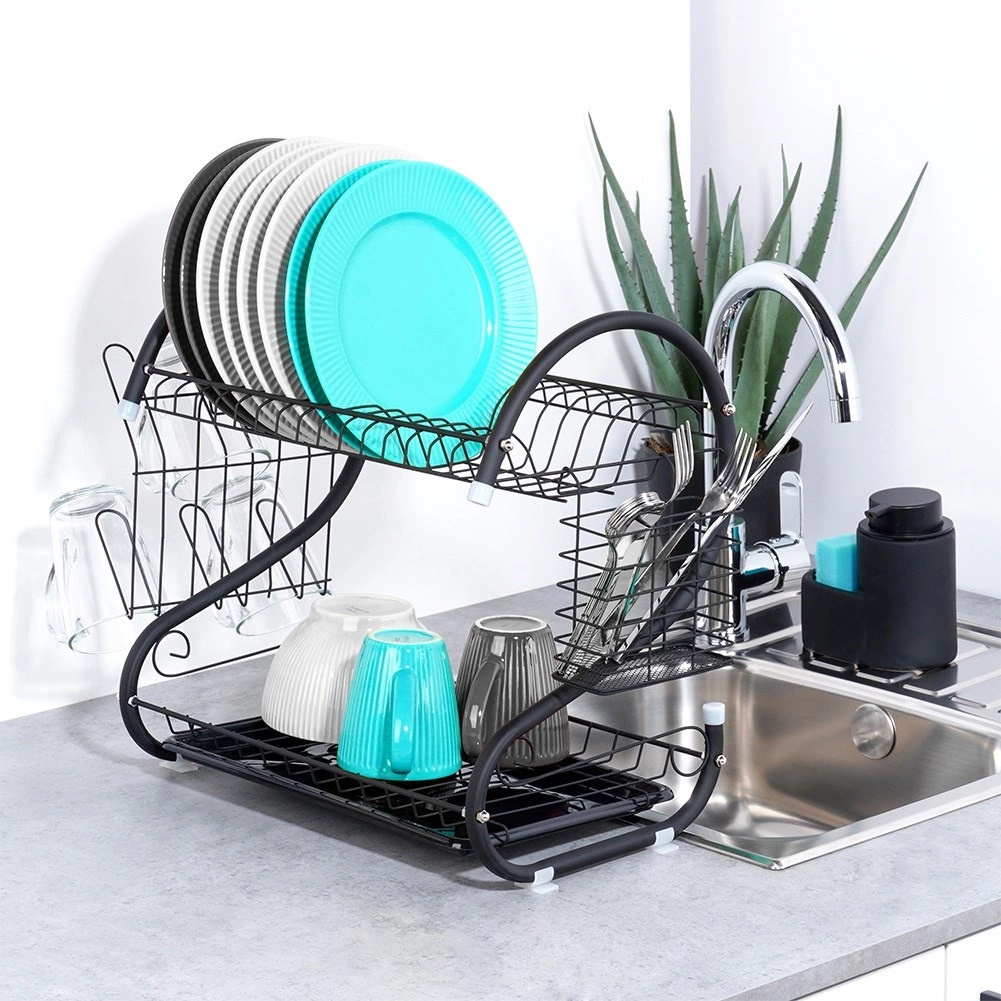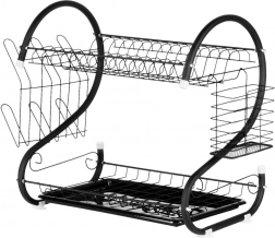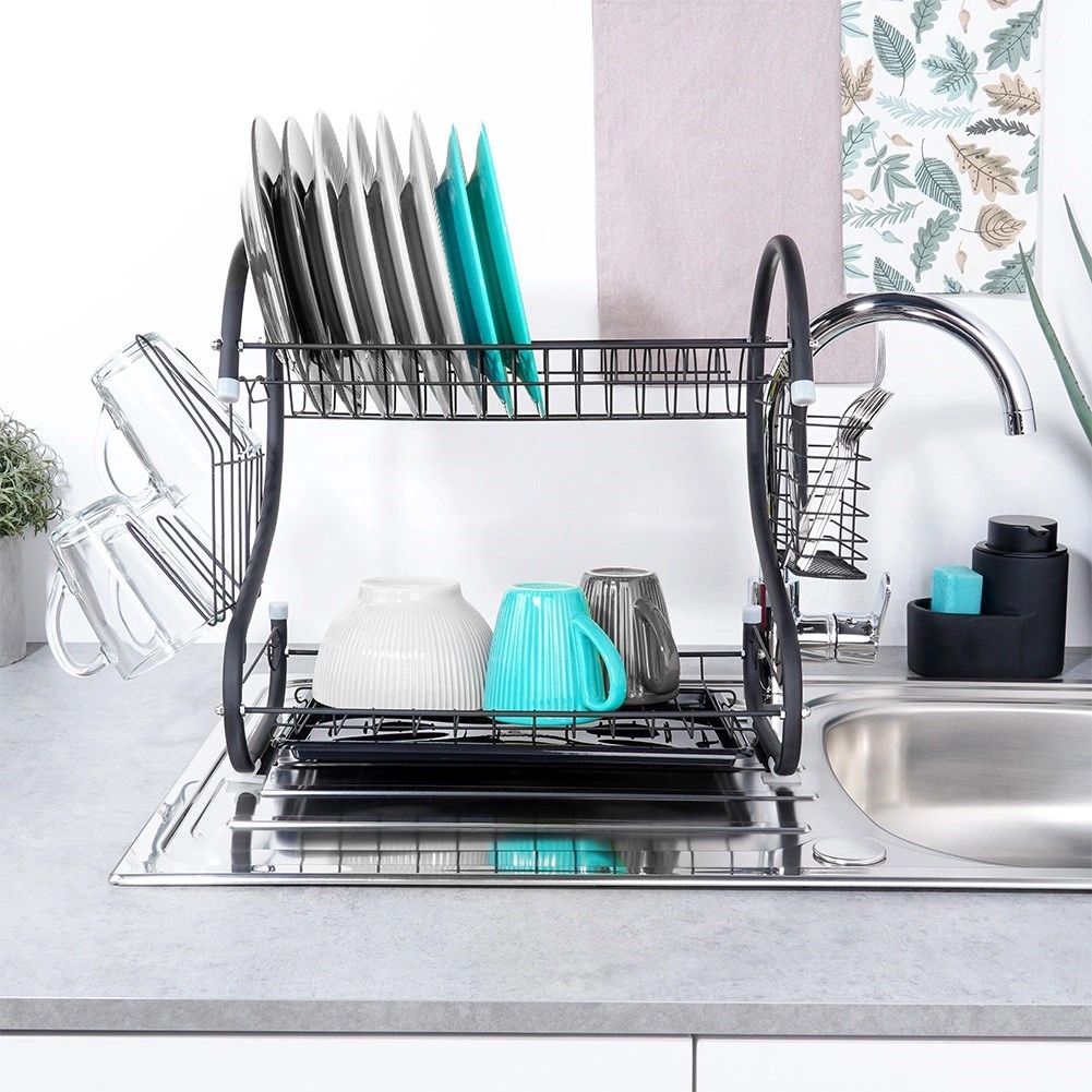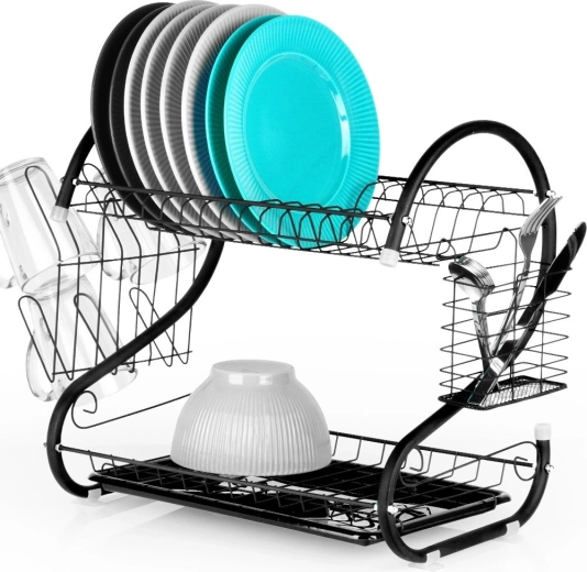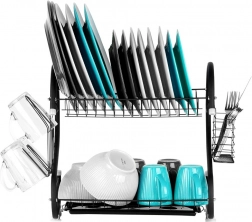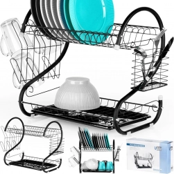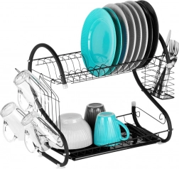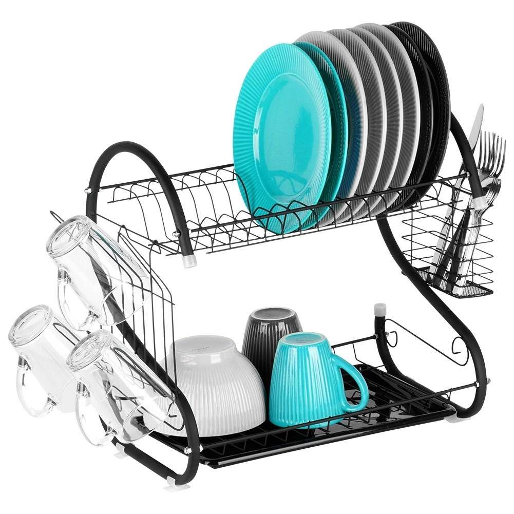 Nivelul superior pentru farfurii, iar cel inferior pentru boluri și căni grăbesc uscarea și economisesc spațiu pe blat.
