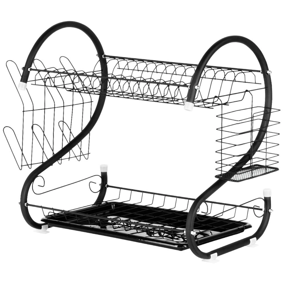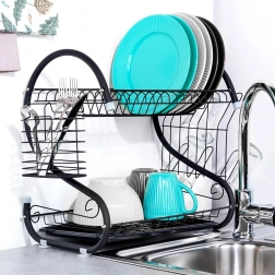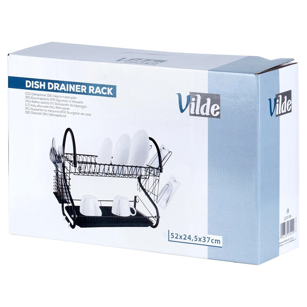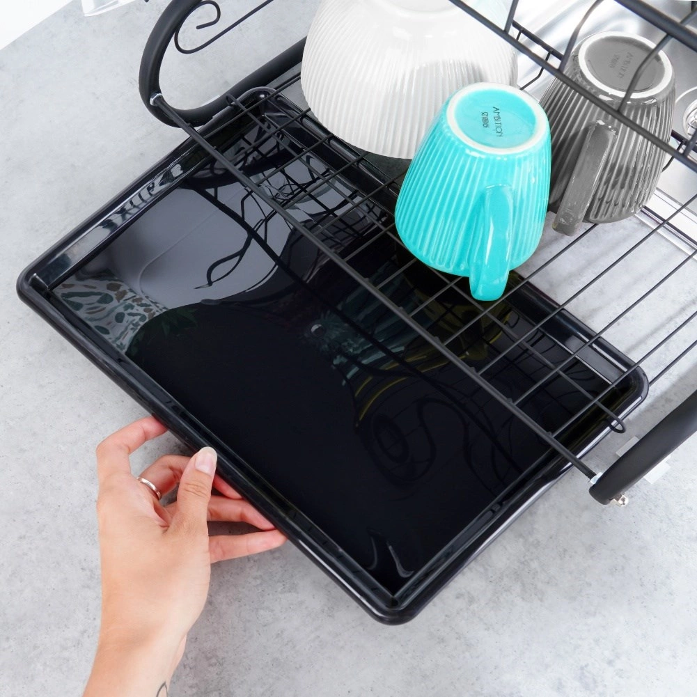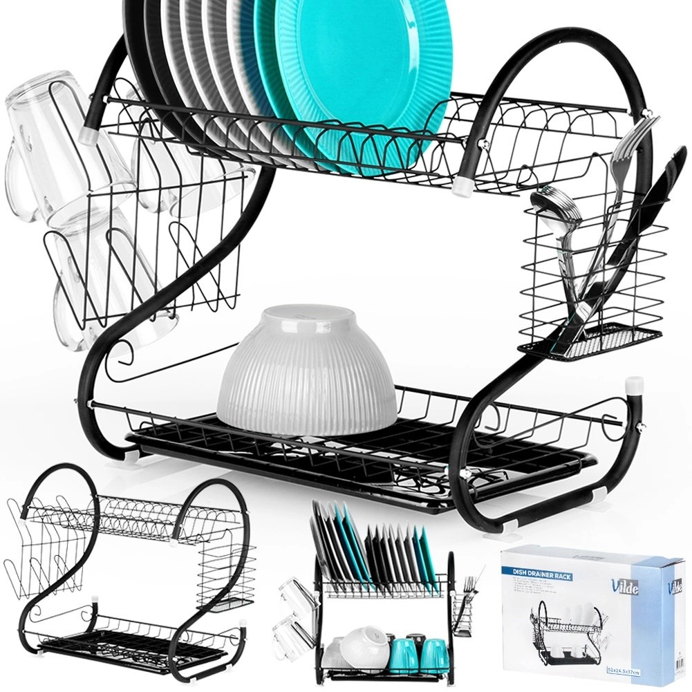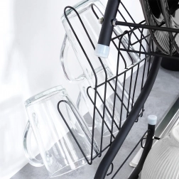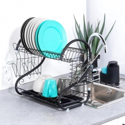 Compact, dar extrem de încăpător, suportul de scurgere pentru vase pe două niveluri ajută la uscarea rapidă a farfuriilor, bolurilor, paharelor și tacâmurilor, protejând în același timp blatul de stropi. Construcția din metal rezistent cu finisaj negru mat arată elegant și se potrivește perfect atât în bucătării moderne, cât și clasice.