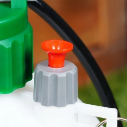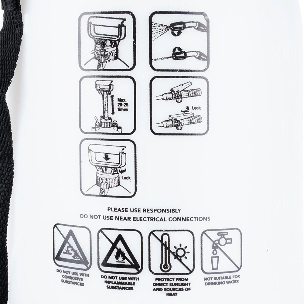 Volum de 5 litri pentru lucru îndelungat fără realimentări frecvente. Pompa manuală creează ușor presiune de lucru până la 3,2 bar, iar supapa de suprapresiune crește siguranța.