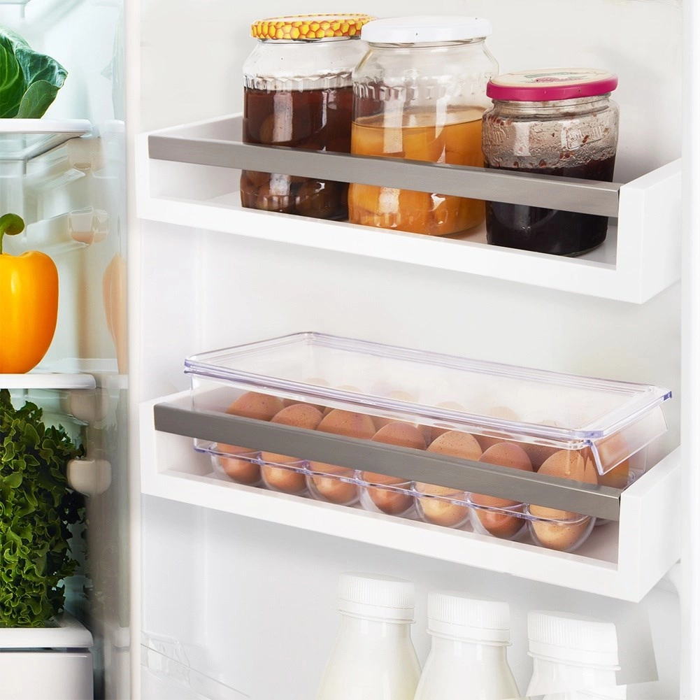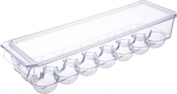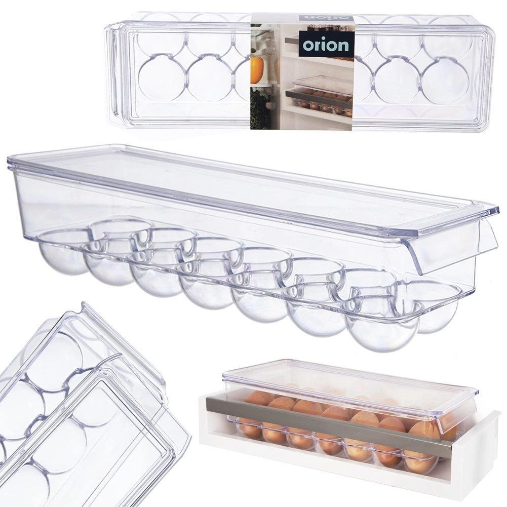 Cutia practică pentru ouă, cu dimensiunile 36 × 10,5 × 8,5 cm, este realizată din plastic transparent de calitate. Adânciturile modelate țin ouăle stabil, împiedică rostogolirea și le protejează de lovituri și de absorbția mirosurilor din frigider. Capacul permite stivuirea sigură a mai multor cutii și utilizarea maximă a spațiului.