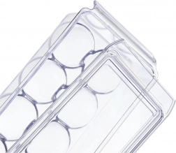 Plasticul transparent asigură vizibilitate excelentă a conținutului, astfel încât știți mereu câte ouă v-au rămas.
