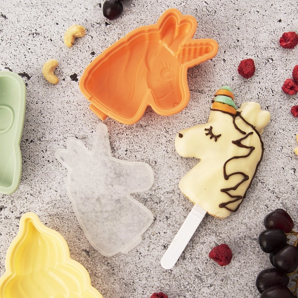 Această formă ORION de calitate, cu un design jucăuș de unicorn, vă ajută să pregătiți înghețate sănătoase de casă din sucuri, smoothie-uri, piureuri de fructe, iaurt sau smântână. Datorită siliconului flexibil, înghețata se eliberează ușor printr-o apăsare delicată după înghețare.