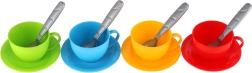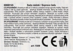 Setul conține tot ce este necesar pentru o mică pauză de ceai: ceainic, ceșcuțe cu farfuriuțe și lingurițe în culori vesele. Ambalat într-o plasă practică, care facilitează depozitarea și transportul. Potrivit de la 12 luni.