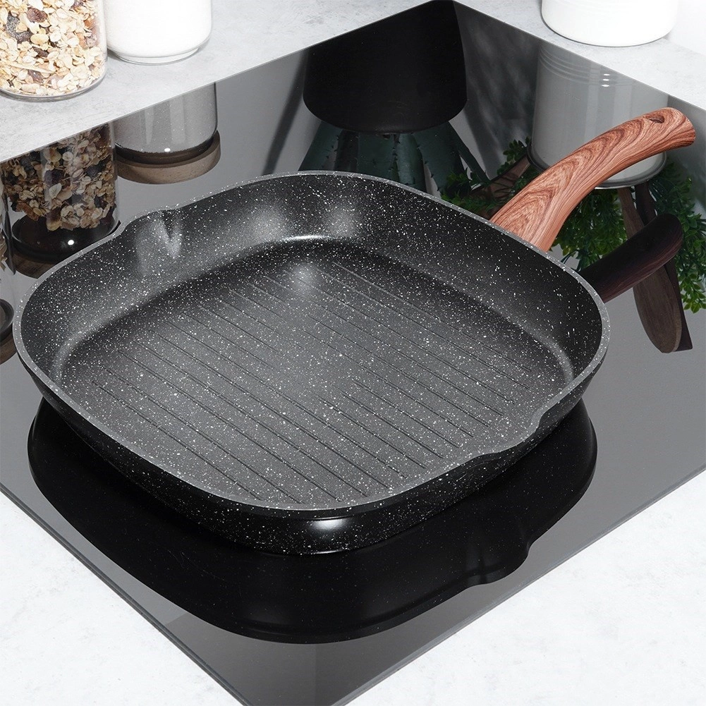 Tigaia grill stilată, în combinație de aspect piatră neagră și lemn, oferă bucătăriei un aer modern și permite gătit sănătos cu minim de grăsime. Striațiile mai înalte evacuează excesul de grăsime, oferă urme de sear intense și rezultate suculente pentru carne, legume și burgeri.