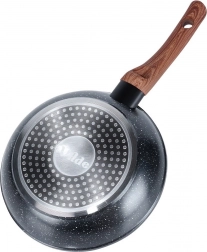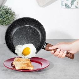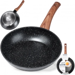 Tigaia stilată, în combinația modernă de negru și lemn, este ideală pentru prăjire și înăbușire zilnică. Corpul durabil din aluminiu turnat se încălzește rapid, iar stratul antiaderent din granit asigură eliberarea ușoară a preparatelor fără lipire – este suficientă o picătură de ulei.
