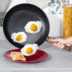Suprafața specială cu efect de piatră permite gătitul cu minimum de grăsime, previne lipirea și accelerează curățarea. Ideală pentru prăjitul zilnic și înăbușire delicată.