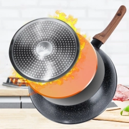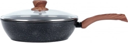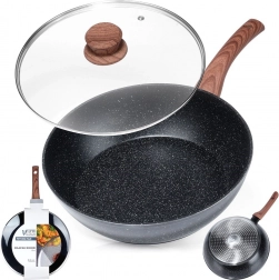 Această tigaie adâncă din aluminiu, cu strat antiaderent din granit, este ideală pentru gătitul zilnic: prăjire, sotare și înăbușire. Combinația elegantă de negru și aspect de lemn se potrivește perfect în bucătăriile moderne, iar capacul de sticlă permite controlul preparatului și menține căldura și umiditatea.
