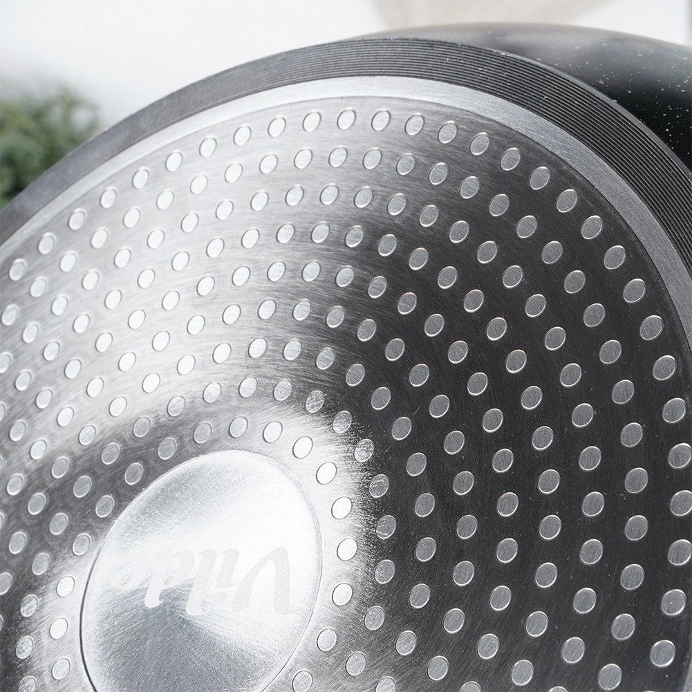 Suprafața permite gătirea cu minimum de grăsime, reduce lipirea și asigură curățarea ușoară. Ideală pentru prăjire zilnică, sotare și înăbușire.