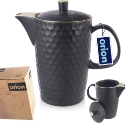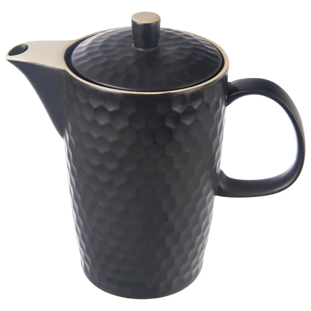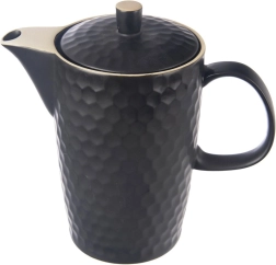 Descoperiți ceainicul practic și cu design TEA TIME din ceramică rezistentă, cu finisaj negru mat. Suprafața texturată inspirată de fagurii de miere adaugă mesei o notă modernă, iar capacul cu mâner ajută la menținerea băuturilor calde pentru mai mult timp și le protejează de impurități.
