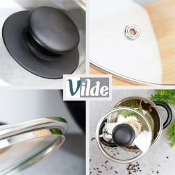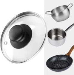 Capacul accelerează gătirea și prăjirea, previne stropirea apei și a grăsimii și ajută la menținerea temperaturii preparatelor după gătire. Orificiul de ventilație asigură evacuarea sigură a aburului și o presiune stabilă sub capac.