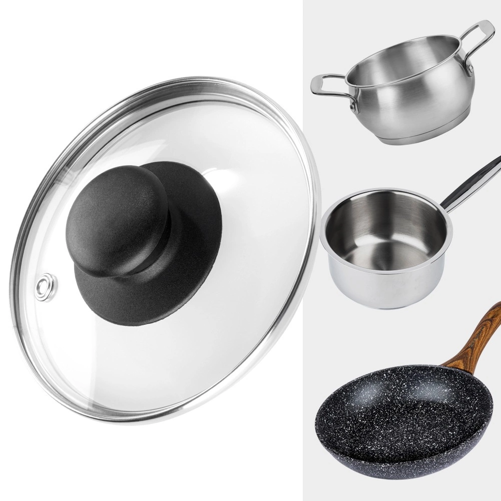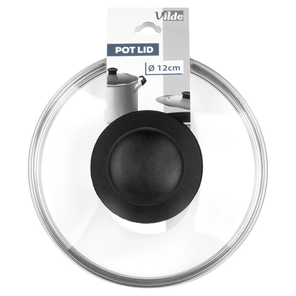 Acest capac universal din sticlă se potrivește perfect pe oale, tigăi și crăticioare cu diametrul de 12 cm. Sticla transparentă rezistentă la căldură, cu margine din inox, asigură durabilitate și întreținere ușoară, în timp ce mânerul ergonomic oferă o prindere sigură. Datorită formei ușor bombate, contribuie la o mai bună circulație a aerului fierbinte.