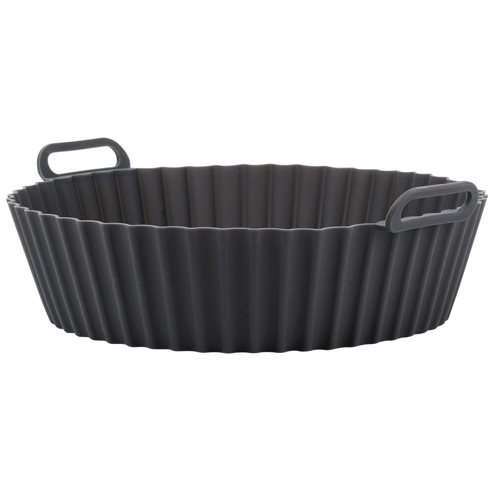 Cu acest coș din silicon gri, vă mențineți friteuza cu aer cald curată fără efort. Puneți pur și simplu inserția în coșul friteuzei, pregătiți cartofi prăjiți, pui sau legume, iar după gătire o scoateți folosind mânerele practice. Suprafața antiaderentă facilitează servirea și spălarea și, în același timp, previne lipirea.