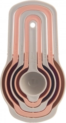 Setul include 125 ml (1/2 cupă), 85 ml (1/3 cupă), 60 ml (1/4 cupă), 15 ml (1 lingură) și 7,5 ml (1/2 lingură). Ideal pentru dozarea precisă a ingredientelor uscate și lichide.