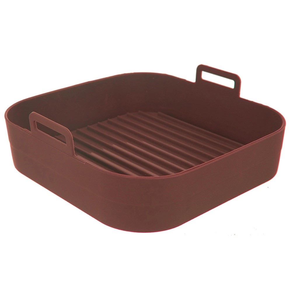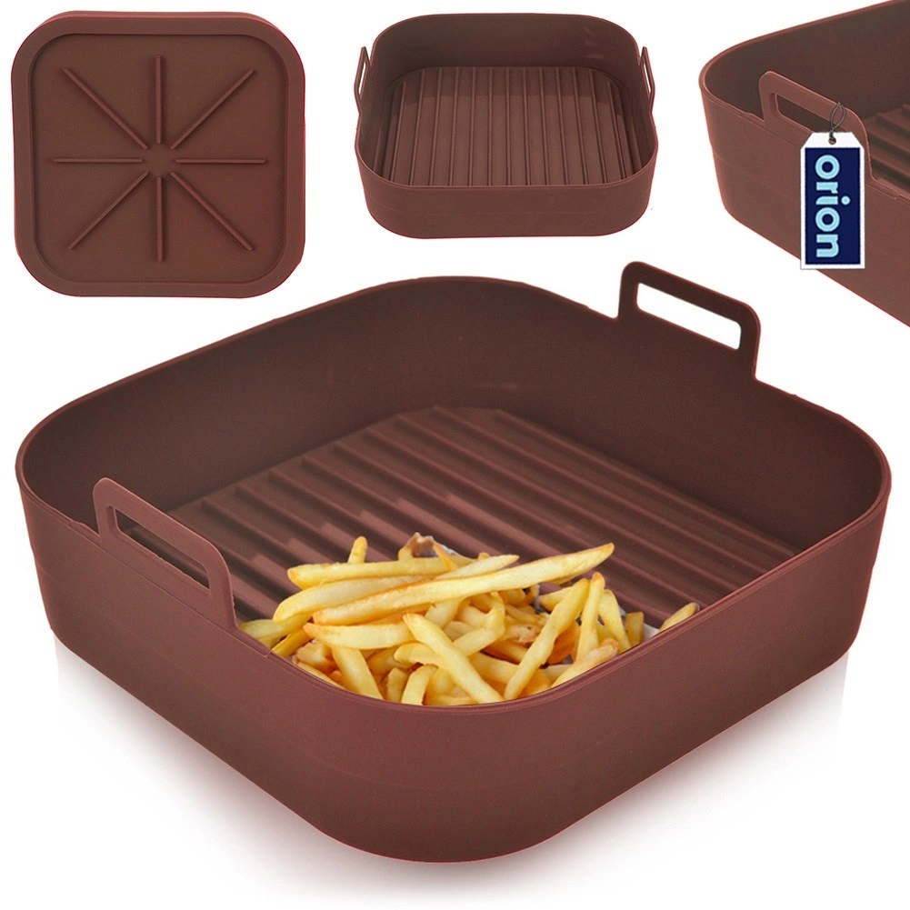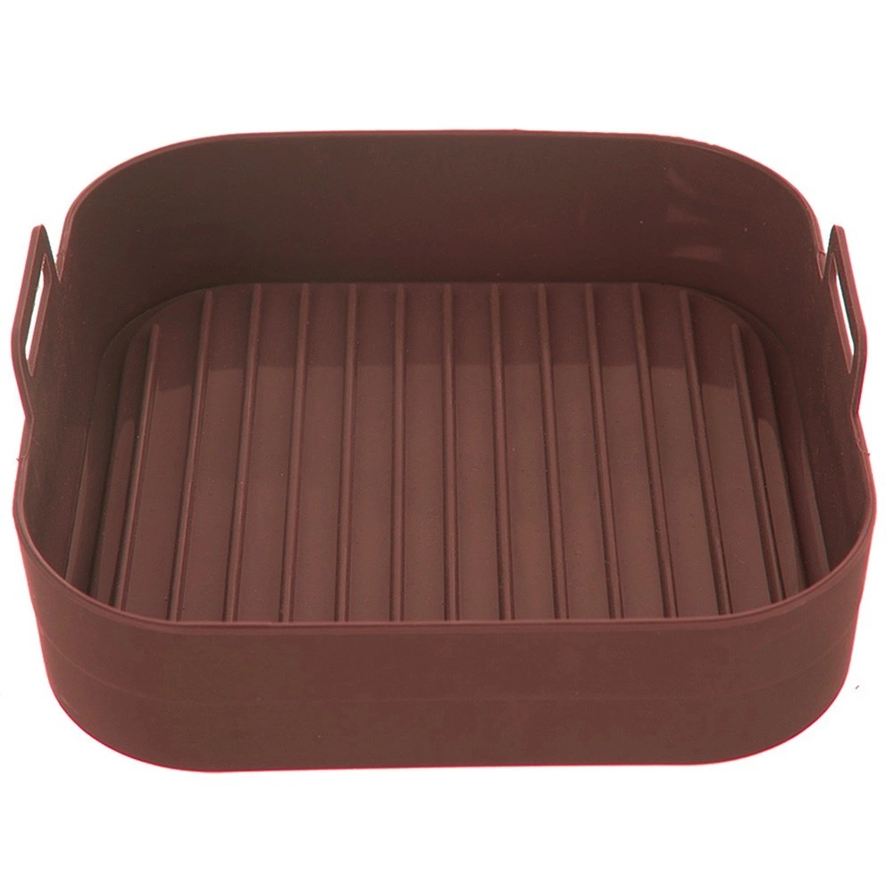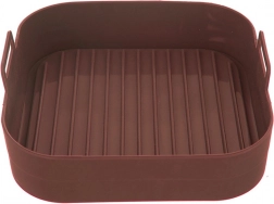Acest coș pătrat din silicon pentru friteuza cu aer cald este ideal pentru pregătirea zilnică a meselor fără dezordine inutilă. Suprafața antiaderentă asigură scoaterea ușoară a preparatelor și curățarea rapidă, în timp ce marginile înălțate și mânerele practice sporesc siguranța la manipulare.