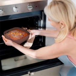 Siliconul de înaltă calitate este potrivit pentru contactul cu alimentele, nu se lipește și facilitează răsturnarea preparatelor fără a le deteriora.