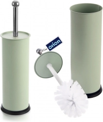 Set practic și rezistent pentru întreținerea zilnică a WC-ului. Corpul suportului este din metal de calitate în verde pastel la modă, suportul periei din oțel inoxidabil, iar perii albi denși curăță eficient și zonele mai greu accesibile. Designul închis ascunde peria și ajută la menținerea unei băi curate și estetice.