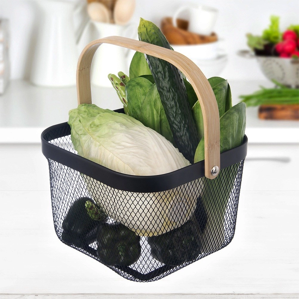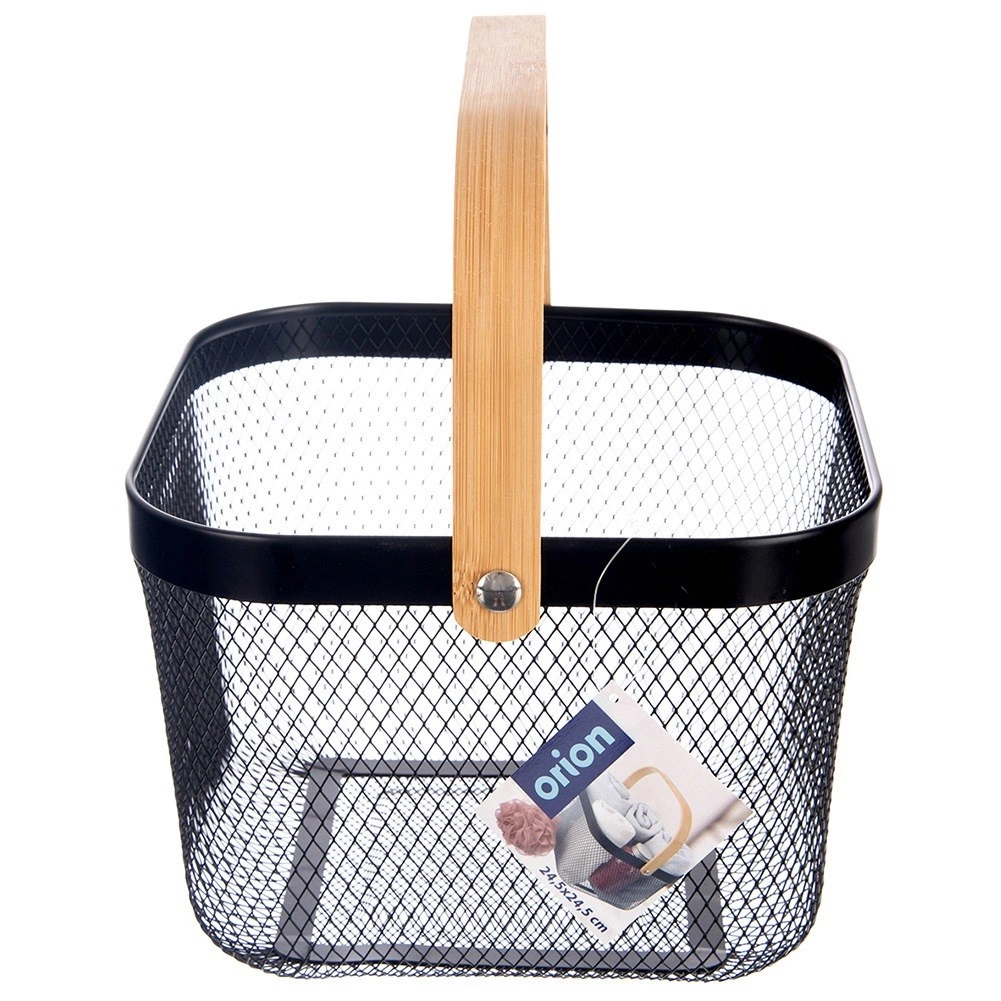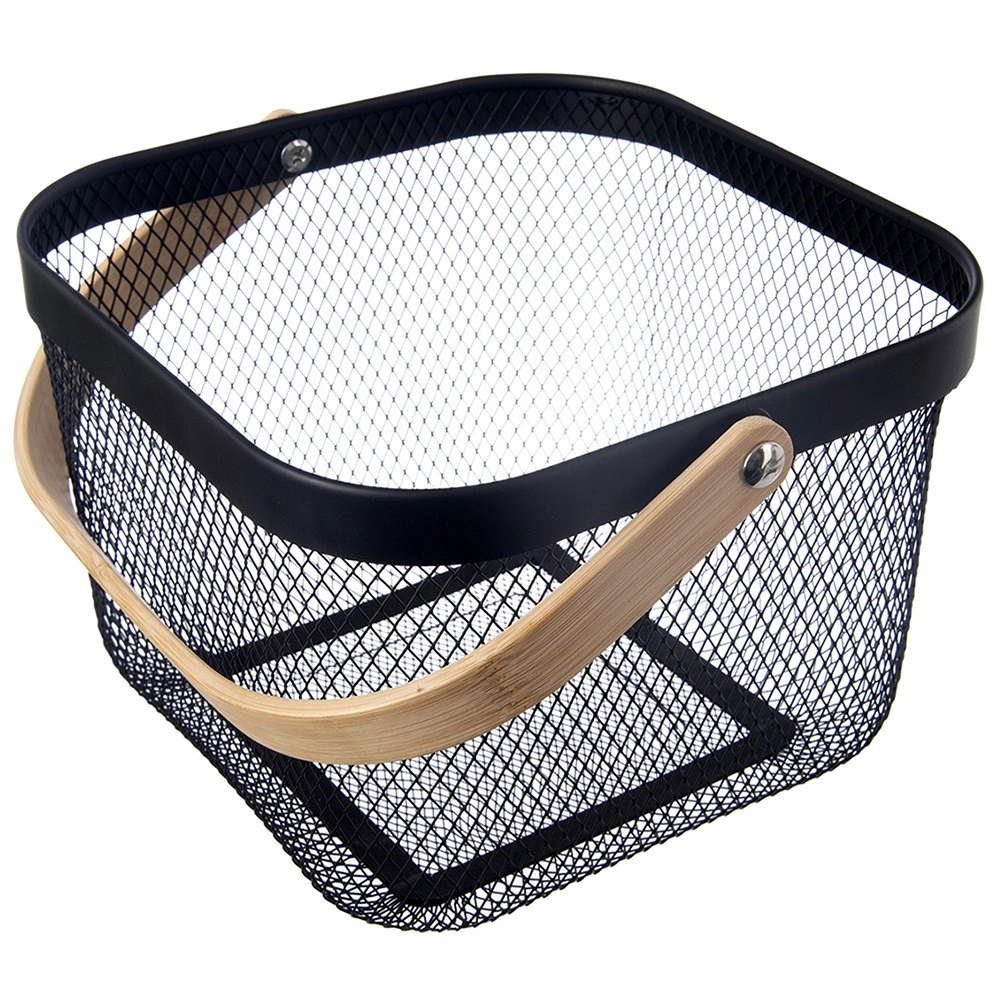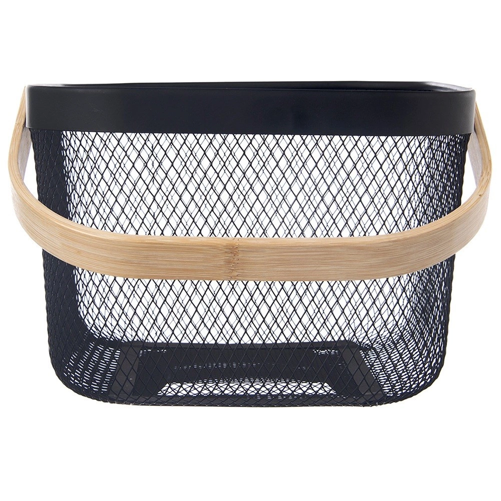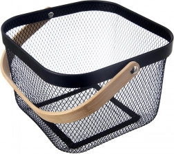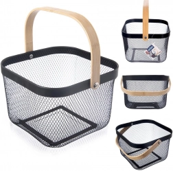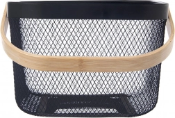 Acest coș practic combină plasa metalică durabilă cu mânerul confortabil din bambus, astfel încât se transportă ușor și, în același timp, menține ordinea în orice încăpere. Datorită construcției aerisite, este perfect pentru păstrarea fructelor și legumelor, dar și pentru depozitarea ordonată a prosoapelor, cosmeticelor și mărunțișurilor.