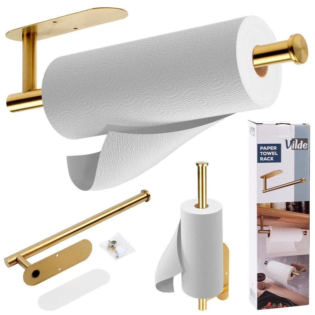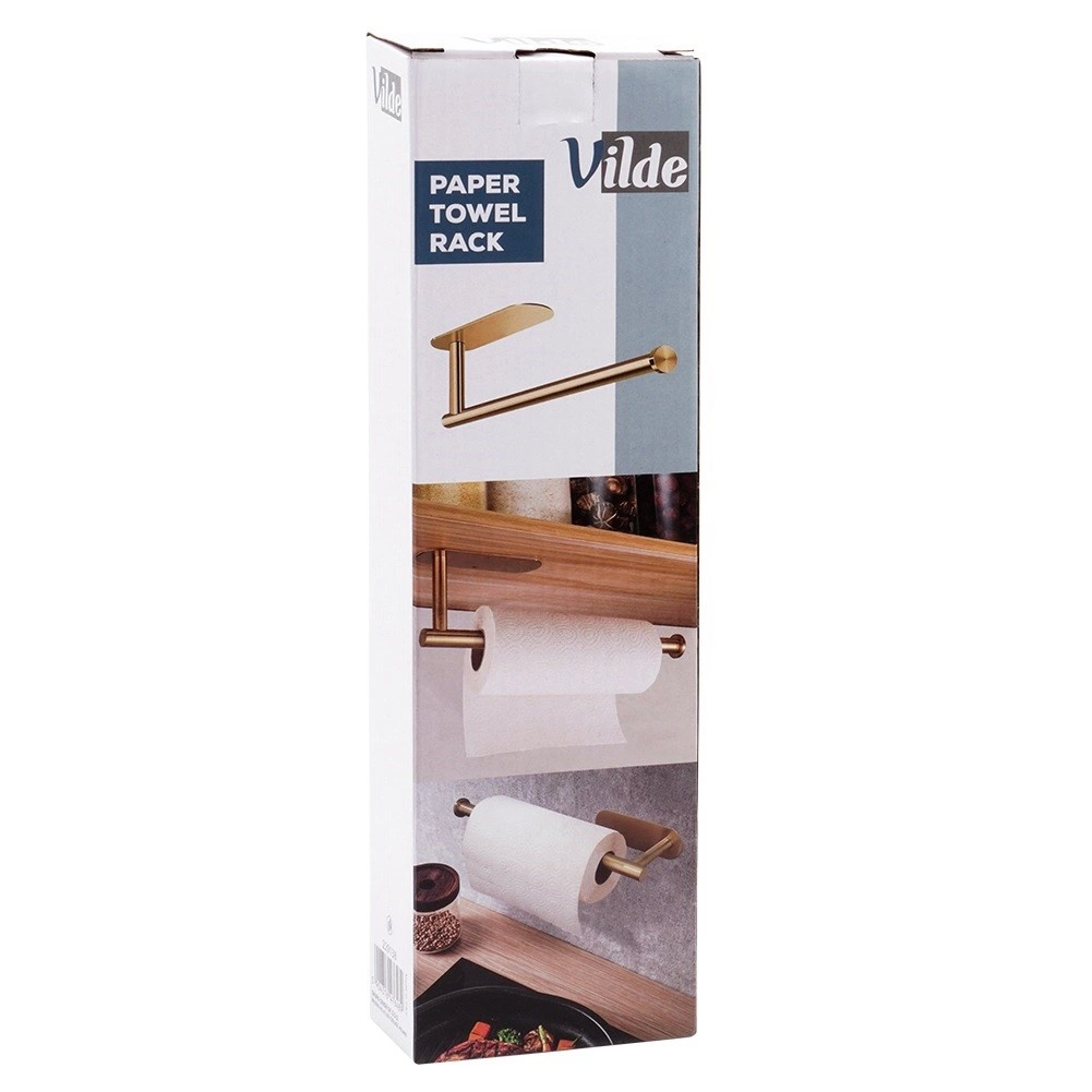 Faceți gătitul și curățenia mai ușoare cu suportul practic pentru prosoape de hârtie Vilde. Designul minimalist cu finisaj auriu periat se potrivește atât în interioare moderne, cât și clasice ale bucătăriei, băii sau biroului. Oțelul inoxidabil asigură rezistență la umiditate și o durată de viață îndelungată.