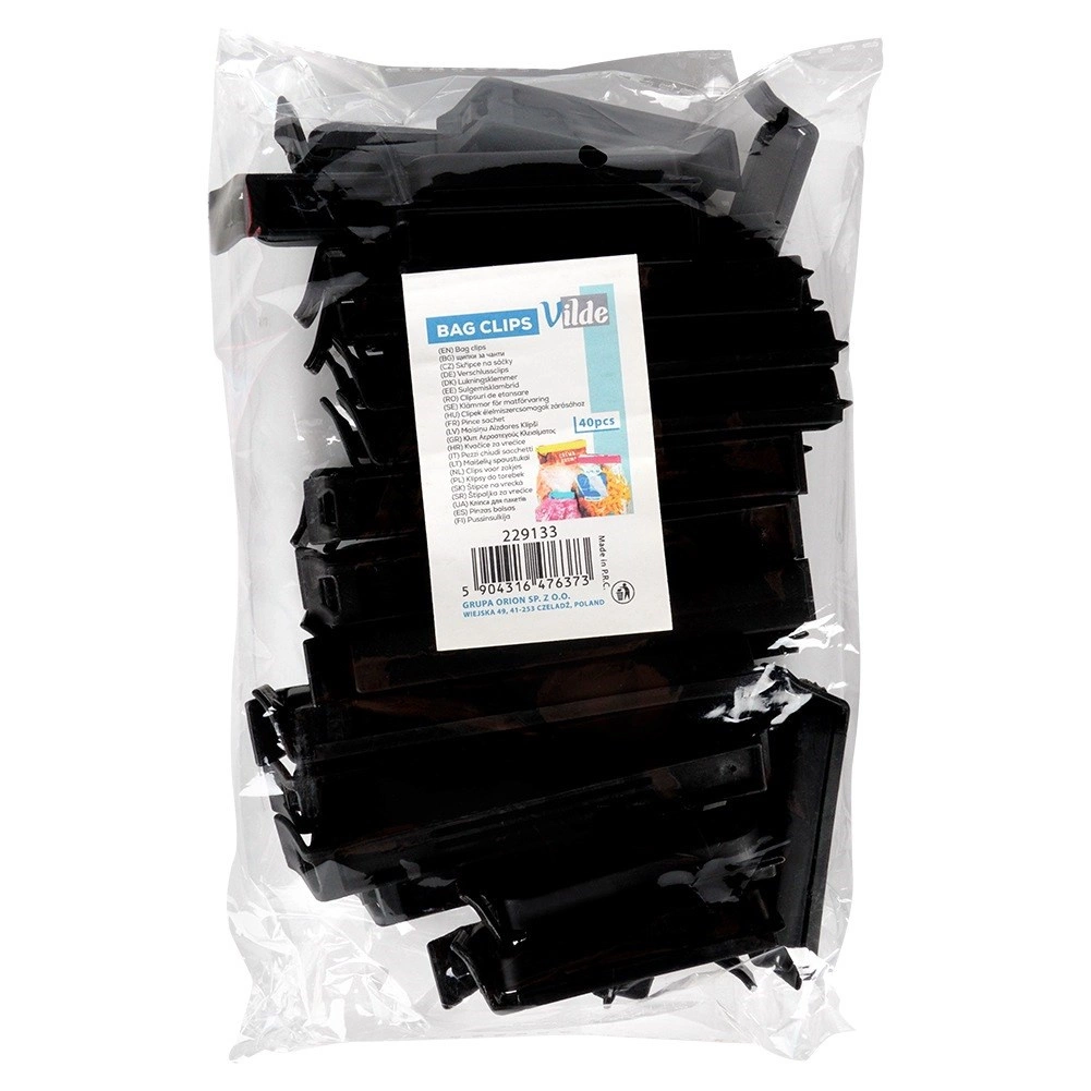 Păstrează ordinea în bucătărie și prospețimea alimentelor cu setul de 40 de cleme solide în două dimensiuni practice. Clemele se prind simplu pe marginea îndoită a pungii și asigură o închidere etanșă de încredere. Designul compact economisește spațiu în sertar și clemele sunt mereu la îndemână.