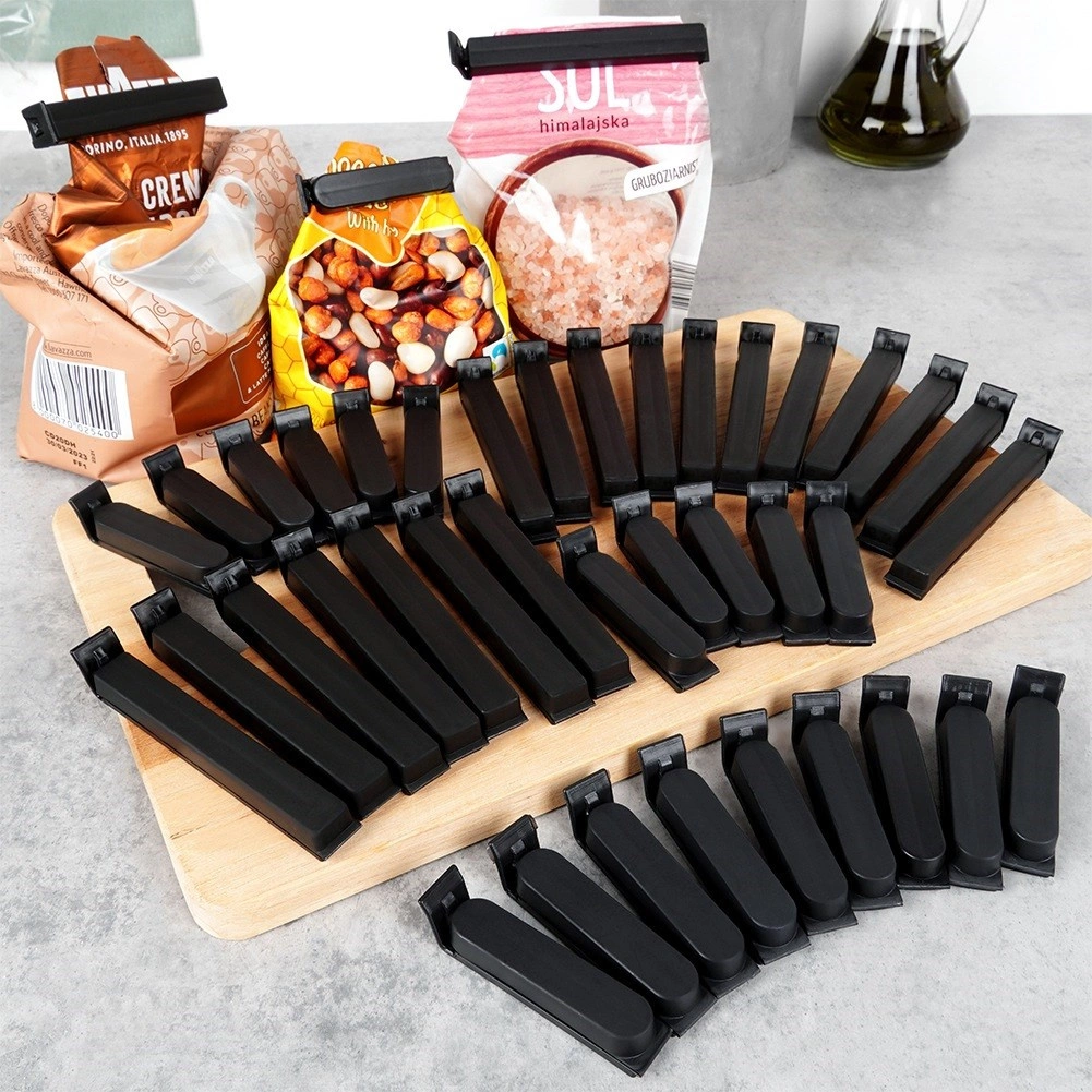 Setul include 20 de cleme mai mari (11 × 1,5 cm) și 20 de cleme mai mici (7 × 1,5 cm), astfel încât închizi ușor atât pungile mici, cât și pe cele mari cu alimente.