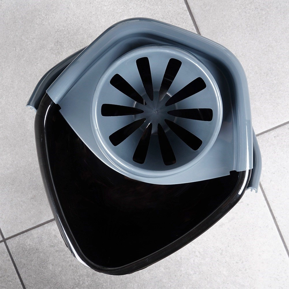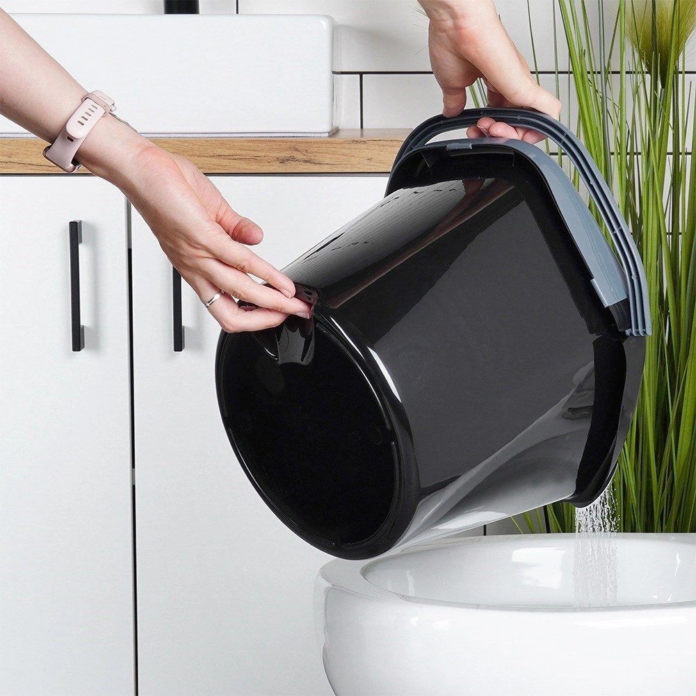 Plastic de calitate în culoare neagră, cu mâner și stoarcător gri, asigură o durată lungă de viață și transport ușor.