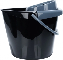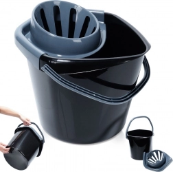 Găleată universală cu construcție durabilă din plastic, în culoare neagră cu storcător gri, combină greutate redusă cu rezistență ridicată. Datorită mânerului ergonomic, se transportă confortabil chiar și plină, iar ciocul profilat asigură golire controlată fără murdărie.
