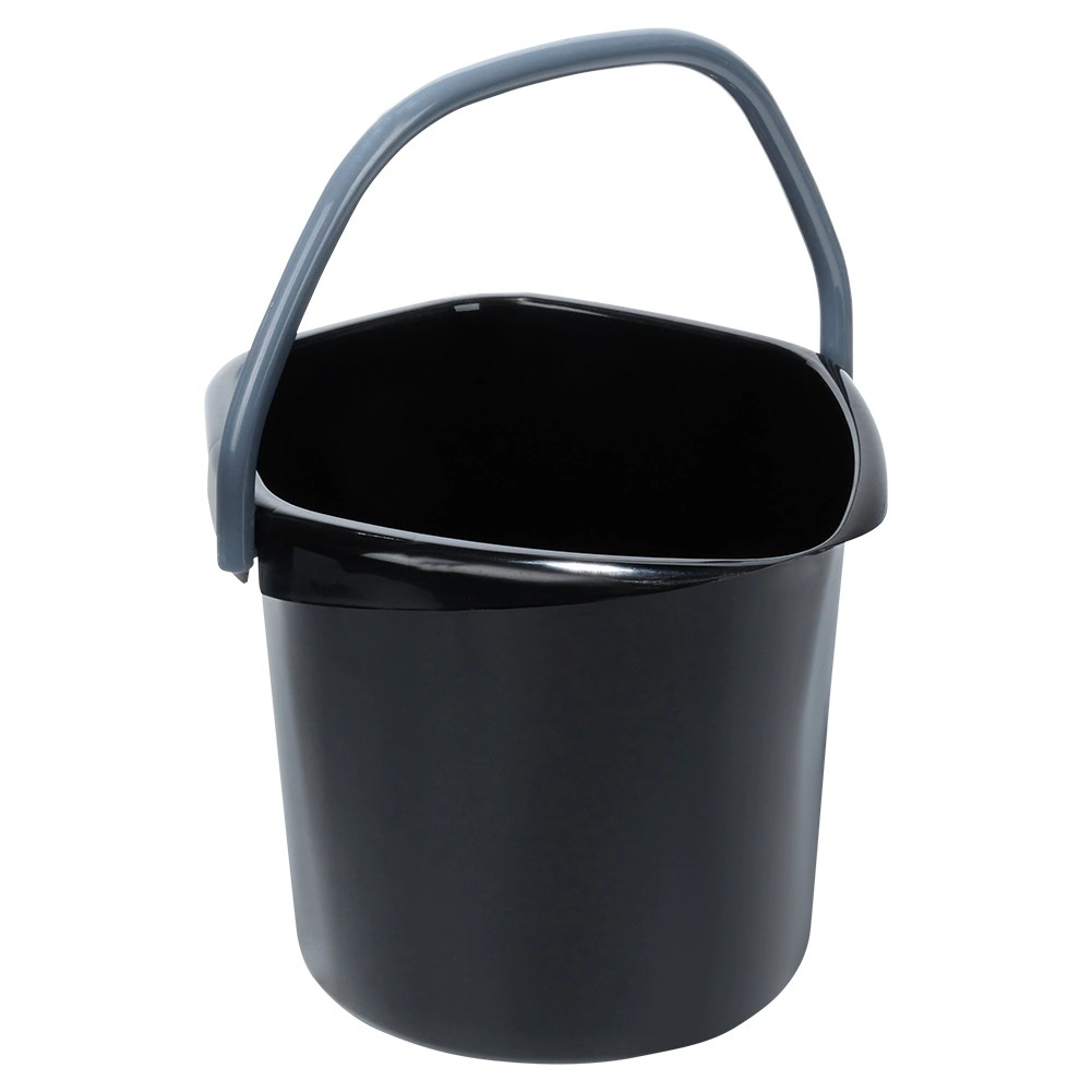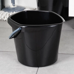 Găleata practică neagră, cu mâner gri robust, este fabricată din plastic de calitate, care este solid, rezistent și ușor de curățat. Datorită utilizării universale, este potrivită pentru curățenie, spălarea pardoselilor, transportul apei și alte sarcini zilnice în casă și în grădină.